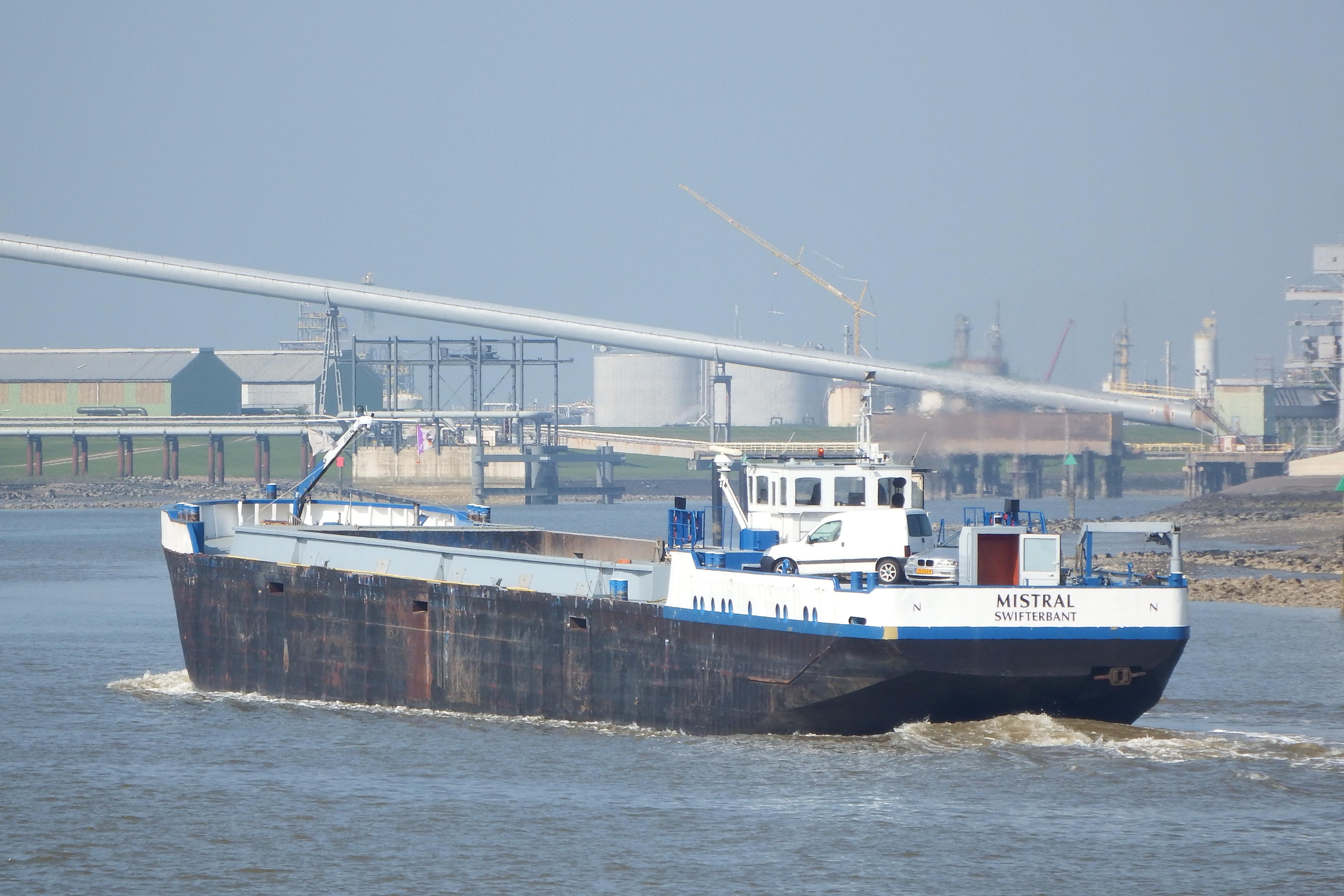 MISTRAL op de Eems inkomend voor Delfzijl op 20-04-2018. |