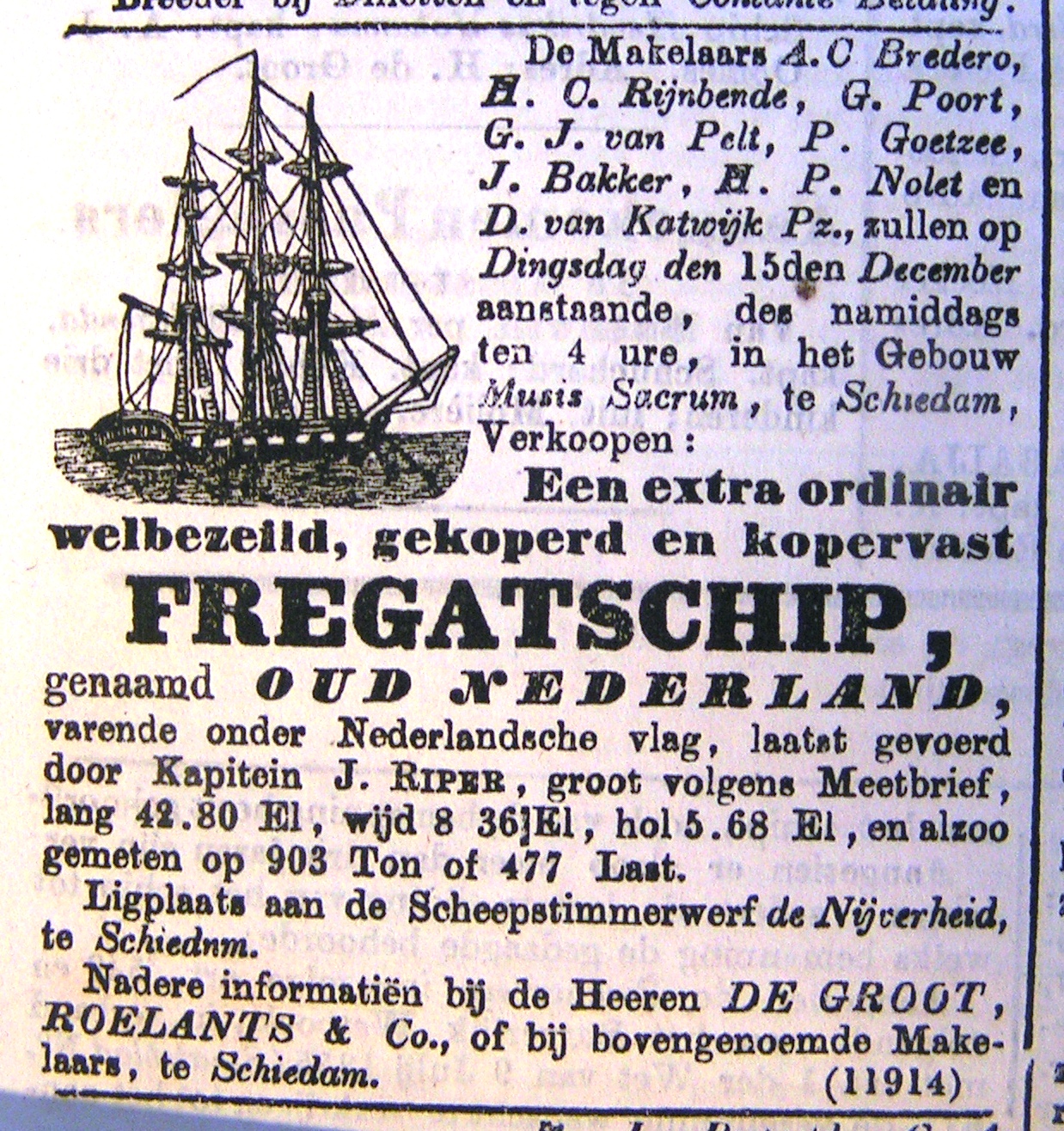 Te Batavia zijn gearriveerd: De 27e september de bark WILLEM BARENDS, kapt. W. Landsaat, de 19e mei vertrokken van Amsterdam. 28 september. De Ned. bark HONG GOANG, kapt. Tjan Goagsan, van Cheribon de 25e september. 28 september. De Ned. schoener KIEN GOAN, kapt. Hadjie Osman, van Sumbawa de 17e september. 29 september. Het Ned. schip JACOB ROGGEVEEN, kapt. H. Rolfs, van Amsterdam de 16e juni, passagiers de heren J.W.C. van Steeden en J. Munters, jufvrouwen W. Brandts en J.P. Logger. 29 september. Het Ned. schip MARIA, kapt. H.D. van Wijk, van Amsterdam de 16e juni. 29 september. Het Ned. schip STRAAT BALIJ, kapt. G. Mulder, van Amsterdam de 24e juni, passagier de heer Struwe. 29 september. Het Ned. schip CATHARINA MARIA, kapt. G.L. Gorting, van Amsterdam de 21e juni. 29 september. Het Ned. schip SARA ALIDA MARIA, kapt. H.A. Tekelenburg, van Amsterdam de 24e juni. 29 september. De Ned. bark MARIA JOHANNA, kapt. J. Sullock, van Padang de 11e september, passagiers de majoor Andriessen en fam., kapt. Hultman, de heer Straus, en Zr.Ms. troepen. 29 september. De Ned. bark SALMA, kapt. C.F. Beasleij, van Sumanap de 23e september. 29 september. Het schip LACHMADY, kapt. Sech Achmat Bin Sadik Jamanie, van Cheribon de 19e september, met Zr.Ms. troepen. 29 september. De brik ALMANSOOR, kapt. Sech Abdul Rachman Bin Achmat Soe, van Indramayoe de 27e september. 30 september. Ned. India COMMERCIE COMPAGNIE, kapt. M. Butyn, van Middelburg de 22e september. 30 september. Het schip ZEEMANSHOOP, kapt. B. Rouffaer, van Amsterdam de 8e juni. 30 september. Het schip SIRIUS, kapt. H.J. Mulder, van Amsterdam de 16e juni. 30 september. Het schip SUMATRA, kapt. K.L. Swart, van Nieuwdiep de 16e juni. 30 september. Het schip ADMIRAAL VAN KINSBERGEN, kapt. A. Glazener, van Rotterdam de 24e juni, passagiers mevrouwen W. Suermondt en P.J.C. van Nieuwenhoven Helbach. Vertrokken. 28 september. Zr.Ms. stoomschip BATAVIA, luit. ter zee 1e klasse J.J. van der Moore, naar Singapore, passagiers de pred. J.C. Fraisinet en echtg., de heren R.T. Steners, B. Buchanan, J. Bijdeveld, B. Andreas en Zr.Ms. troepen. – Het Ned. schip BATAVIA, kapt. E. Verschoor, naar Rotterdam, passagiers de heer A. Parkes en 5 militairen. 28 september. Het Ned. schip J.C.J. VAN SPEYK, kapt. J. Nolte, naar Soerabaja. 28 september. Het Ned. schip D'ELMINA, kapt. J.C. Jansen, naar Samarang. – De Ned. bark SAFOERA, kapt. Aboe Tair Bin Hadjie Moehamat Seid, naar Banjermassing. – De Ned. schoener GOCDANG BAZAAR, kapt. Pa Tarisag, naar Jawana. 29 september. De Ned. bark CANTON, kapt. K.W.E. Berger, naar Rotterdam, passagiers mevr. de wed. Verhoeff en 3 dochters en 4 militairen. – Het Ned. schip GENERAAL LIST, kapt. G.A. Sandman, naar Amsterdam. – De Ned. bark GENERAAL CHASSE, kapt. J. Scott, naar Cheribon. 29 september. De Ned. bark WILLEM ERNST, kapt. H. Wittebol, naar Soerabaja, passagier mevr. A.M. Kuhn. 29 september. De Ned. bark CHINA, kapt. T.C.H. Kock, naar Muntok. – De Ned. brik PASEKAN, kapt. Pa Pao, naar Pekalongan. – De Ned. schoener ALOEI SEGAF, kapt. Said Aloei Bin Abdulla Segaf, naar Sumanap. – Het Ned. schip DJEILANIE, kapt. Said Moehamat Bin Alie, naar Sumanap. 30 september. Het Ned. schip ATIAT RAGMAN, kapt. J.H. van Harling, naar Rembang. 1 oktober. Het Ned. schip NOVA SEMBLA, kapt. L. Heijkoop, naar Samarang. 1 oktober. Het Ned. schip FATHAR RACHMAN, kapt. K. de Looper, naar Muntok. 1 oktober. Het Ned. schip ADMIRAAL JAN EVERTSEN, kapt. C.P. Kuijper, naar Amsterdam, passagier de heer A. Colombat. 1 oktober. Het Ned. schip MARSOEK, kapt. Sech Salman Bin Achmat Bin Soenkar, naar Kandanghaur. – De Ned. bark SUMATRA, kapt. H. Veldtman, naar Makasser. 1 oktober. De Ned. bark INDRAMAYOE, kapt. Nie Tekwie, naar Cheribon. Schepen liggende ter rede. Zr.Ms. korvet NEHALENNIA, stoomschip BORNEO, KONINGIN DER NEDERLANDEN; Gouv. schoener DORIS, Ned. schepen de JOHANNA, de ADMIRAAL JAN EVERTSEN, NOVO ZEMBLA, ZEELAND, FATHAR RACHMAN, MARSOEK, ECHO, COMMERCIE COMPAGNIE, LACHMADIE, SARA ALIEDA MARIE, CATHARINA MARIA, STRAAT BALIE, MARIA, JACOB ROGGEVEEN, barken ALBATROS, DRIE GEBROEDERS, AUSTRALIEN, BUITENZORG, ARDJOENO, de MAAS, NAUWAN ELJOESOOR, JENOER, DIEDERIEKA, FATAHOOL WAHAP, INDRAMAYOE, FATAL KAIR, HOKSOEN, SALMA, MARIA JOHANNA, HONG GOAN, VAN DER PALM, WILLEM BARENDS, SUMATRA; brik TARTAR, AL MANSOOR, schoener INDRAMAYOE, KIM GOAN, TJIENSING REMBANG, BLINJOE SRIEBOELAN. – Eng. schip URGENT, bark LADY OF THE LAKE. – Frans schip RACINE, NICOLAAS CEZARD. – Zweeds schip SIR ROBERT PEEL. – Brem. schip VICTORIA. – Siamsch. bark Brahma. Samarang. Aangekomen. 21 september. Het Ned. stoomschip KONINGIN DER NEDERLANDEN, kapt. G. Batten, van Batavia de 19e september, passagiers de heren Waller, Krook van Harpen, Bogaard, 4 kinderen van de heer Oudhoff, Zr.Ms. troepen en bannelingen. – De Ned. schoener TIAN HAPLIE, kapt. Tan Lie, van Balie Ampenan de 16e september. 22 september. Zr.Ms. stoomschip ETNA, luit. ter zee 2e klasse J.G. de Man, van Batavia de 20e september. 23 september. De Ned. bark HOKSOEN, kapt. Djan, van Balie Beleling de 20e september. – De Ned. kotter SATANIE, kapt. Pa Sarie, van Batavia de 14e september. 26 september. De Ned. schoener LOUISE, kapt. Loso, van Japara de 23e september. 26 september. De Ned. schoener KOEMPOOL MAAS, kapt. Djamalodien, van Banjermassing de 21e september. Vertrokken. 20 september. De Ned. bark SAMARANG, kapt. B.J. Raket, naar Padang. – De Ned. schoener TJINGSENG REMBANG, kapt. The Biansiang, naar Batavia. 23 september. De Ned. bark HOKSOEN, kapt. Djan, naar Batavia. – Zr.Ms. stoomschip ETNA, luit. ter zee 2e klasse J.G. de Man, koersstellende om de west, aan boord hebbende Zijne Hoogheid de Hertog van Saxen Weimar, commandant van het Indisch leger, benevens adjudant en de heer mr. C.A. de Jongh en fam. 25 september. Het Ned. stoomschip KONINGIN DER NEDERLANDEN, kapt. G. Batten, naar Batavia, passagiers de heren mr. d' Ablaing, D. Mclaine, Boeken, Zr.Ms. troepen en bannelingen. 