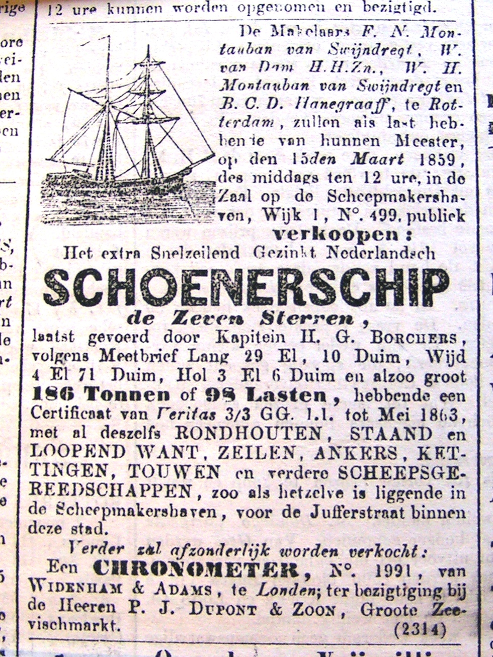 Op vrijag de 16 dezer, des namiddags ongeveer 2 uur, had er bij de “Zoutkamp” een droevig ongeluk plaats. Een matroos der bemanning van het aldaar op de rede ten anker liggend nieuw gebouwd schoenerschip de ZEVEN STERREN, kapt. Ruhaak, was met een boot naar de wal geweest en wilde daarmee, wrikkende, naar het schip terugkeren. Geheel alleen zijnde, wiel het hem zichtbaar ten uiterste moeilijk, om tegen de felgaande stroom op te worstelen, toen hij plotseling, waarschijnlijk door het uitglippen van de wrikriem en door uitputting van kracht, achterover in het water stortte en dadelijk in een zinkende toestand verkeerde. Kapt. Van Duinen, die met zijn schip aan de haven lag, wierp zich pijlsnel, met twee van zijn manschappen, in zijn boot en roeide met inspanning van alle krachten naar de plaats, waar hij de ongelukkige nog hoopte te vinden en te redden. Ook de altijd hulpvaardige kapt. Boomgaard, die juist met zijn stoomboot en een nieuwe schoener was aangekomen, beijverde zich, om enig spoor van de drenkeling te ontdekken, doch het mocht hun niet gelukken, hun verenigde pogingen met een gewenste uitslag bekroond te zien; - het voorwerp van hun menslievend streven was reeds spoorloos in de golven verdwenen. Met aandoening werd dit droevig toneel door velen uit de haven aanschouwd, en algemeen is de deelneming in het lot van de verongelukte, genaamd Bronno Bakker, van Foxhol, gemeente Hoogezand, oud bijna 22 jaren, ouderloos, milicien-verlofganger van het 8e regiment infanterie, en als een wakker, braaf en oppassend zeeman bekend.