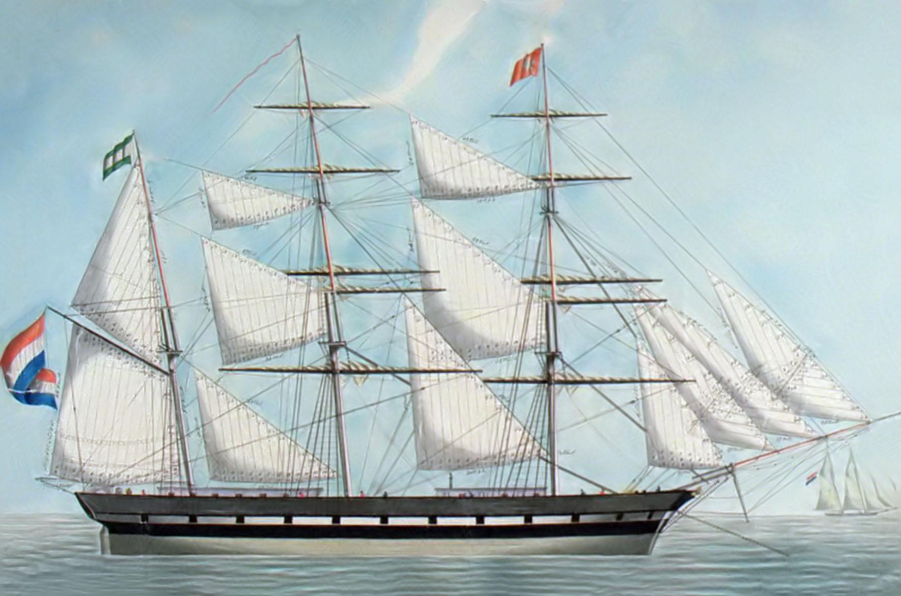 • 1865 van de bark “Wilhelmina”    378 last  varend voor Gebr. Kröner te Rotterdam