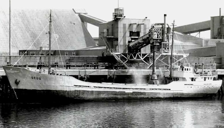 Dego 1964 discharging her cargo at Delfzijl Eemskanaal the 15th November 1982. |