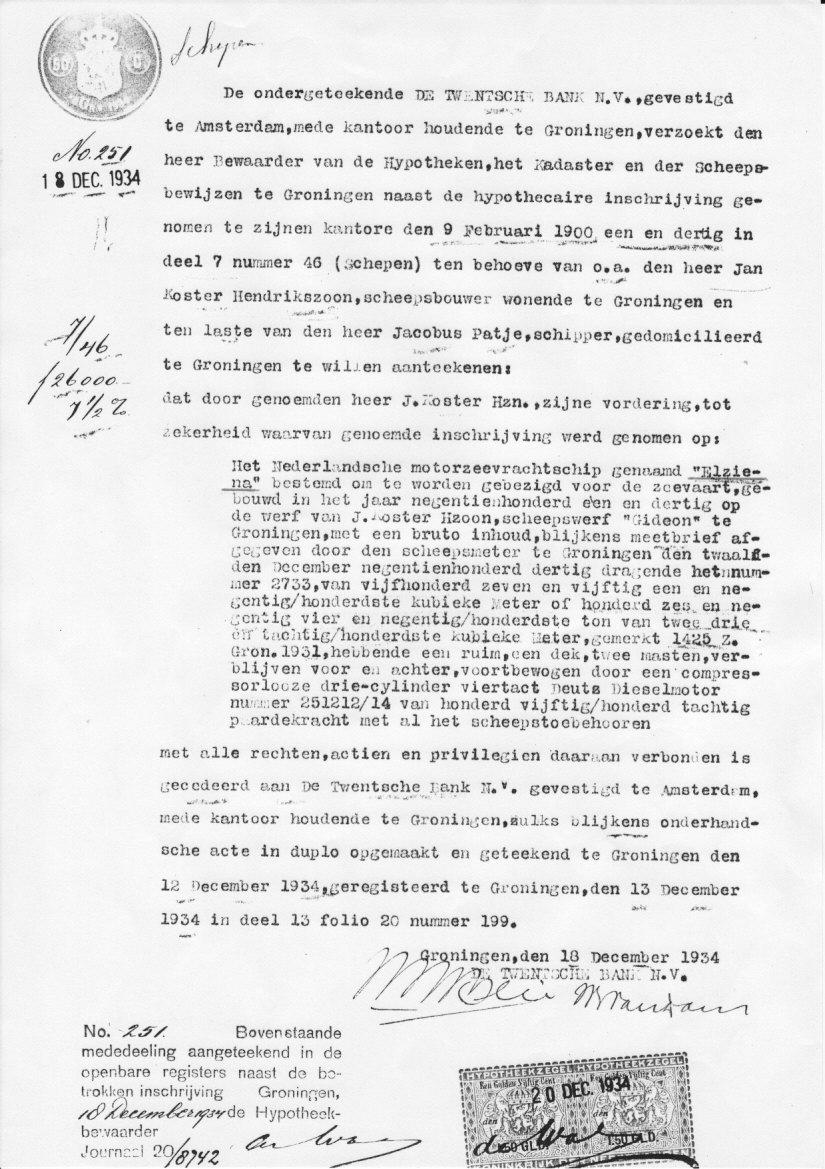 Friesch dagblad 05-03-1940: Groninger kustvaarder „Elziena" beschotenen gezonken De kapitein en de motordrijver om het leven gekomen. De drie overige opvarenden gered.Het Nederlandsche motorschip „Elziena", thuisbehoorend te Sappemeer, dat op weg was van Galathee bij Ooltgensplaat naar Leith in Schotland met een lading uien, is op de Noordzee door een vliegtuig beschoten, waarbij de kapitein, de heer H. Uuldriks, en de motordrijver werden gedood. Reuter meldt hieromtrent nader uit Londen, dat het schip bij de beschieting in brand geraakte en dat het na twee uur tijds zonk, de bemanning bestond in totaal uit vijf personen. De drie overlevenden warden gered. Twee van hen werden gewond. De aanval geschiedde Zaterdagochtend vroeg. Op de scheepswanden waren groote Nederlandsche vlaggen geschilderd, zoodat de nationaliteit van het schip duidelijk zichtbaar was. Naar de kok, de heer Jager, die in het ziekenhuis is opgenomen, met verwondingen aan het hoofd, het gelaat en de armen, verklaarde, heeft een Duitsch vliegtuig, na zeer laag over het schip gecirkeld te hebben, de “Elziena" zesmaal met machinegeweervuur bestookt. De kapitein was om zich te beschermen plat op den vloer van de stuurhut gaan liggen en gaf mij, aldus de heer Jager, bevel om naar beneden te gaan. Het achterdek werd door een bom getroffen, waarna een andere bom de stuurhut versplinterde. De kapitein kwam hierbij om het leven. De heer Jager werd door de in het rond springende splinters van de stuurhut getroffen en gewond. Toen de motordrijver en de eerste stuurman trachtten een reddingboot neer te laten, dook het vliegtuig opnieuw omlaag en liet het een derde bom vallen, welke de reddingboot vernielde en den motordrijver doodde. „Ik gooide een vlot over boord, aldus vervolgde de heer Jager, en dook in de zee. De eerste stuurman en de matroos volgden mij en wij slaagden er in met het vlot weg te komen, maar het was zoo enorm koud, dat wij op elkaar moesten gaan liggen om een beetje warmte te krijgen. Een Deensch schip heeft de drie mannen, nadat deze 36 uur hadden rond gedreven, opgepikt. De „Elziena" was het eigendom van den heer J. Patje en had een bruto inhoud van 197 ton. Het was in 1931 te Groningen gebouwd. De N.V. Carebeka te Groningen trad als cargadoor van het schip op. Het was op 22 Februari van Galathee naar Leith vertrokken met een lading van 200 ton uien. De verschepers hiervan waren de N.V. Handel Maatschappij J. van As J.J.zn en de firma N. J. Mulder te Rotterdam. De „Elziena" werd Donderdag of Vrijdag jl. te Leith verwacht en was dus enkele dagen over tijd. De afladers hadden een telegram uit Leith ontvangen, waarin bericht werd, dat omtrent de aankomst van het schip nog niets bekend was.