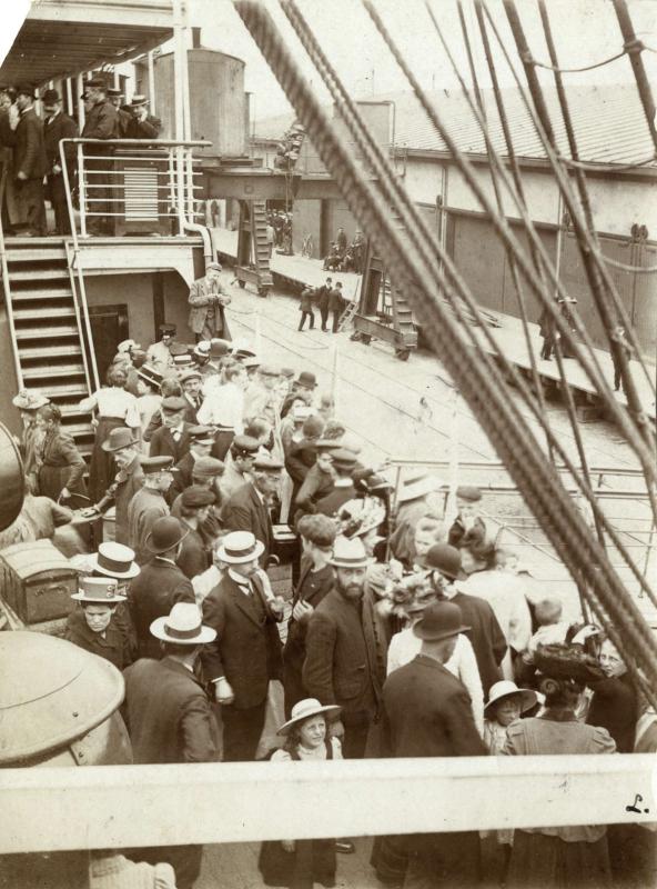 Middelburgsche courant, 13-07-1909: De proeftocht van de "FRISIA". (Van onzen eigen verslaggever). Onder Laatste berichten is in ons vorig nummer reeds in 't kort gemeld dat de Frisia, gebouwd op de werf der Koninklijke Maatschappij De Schelde te Vlissingen, voor rekening van de Koninklijke Hollandsche Lloyd, op den Zaterdag gehouden proeftocht uitstekend voldaan heeft. Thans willen we nog iets uitvoeriger op dien tocht en wat er mede in verband stond, terugkomen. In den vroegen morgen was de Frisia van Amsterdam naar IJmuiden vertrokken. In de hoofdstad had zij reeds eenige passagiers aan boord genomen maar het meerendeel der genoodigden, ook wij wachtte bij de groote sluis te IJmuiden de stoomer op om daar zich in te schepen. 't Was, zooals we seinden, druilig weer, een fijne regen druppelde, er stond heel wat wind en alles voorspelde een van die najaarsachtige zomerdagen, waaraan wij helaas gewend worden. Tegen negen uur zagen we in de verte de Frisia, gesleept door een klein stoomertje, aankomen en weldra gleed het kolossale stoomschip, het grootste dat in Nederland gebouwd werd, de sluis binnen. Toen begaven we ons aan boord, waar we kennis maakten met onze gastheeren voor dien dag en met de overige genoodigden. Daaronder waren de heeren Jos van Raalte, directeur, Martin en Van Waveren, ingenieurs van De Schelde, jhr. Op ten Noort, Nierstrasz en Rehbock, commissarissen, Meurs en Wilmink, directeuren, De Bruyn Kops, ingenieur, Fourdraine, inspecteur, en De Beaufort, adjunct-ingenieur, allen van de Kon. Hollandsche Lloyd; verder vertegenwoordigers van de firma Allan & Co. te Rotterdam en van de firma Mynssen & Co. te Amsterdam. De eerste zorgde voor de inrichting der salons, de tweede voor de electrische installatie. Voorts waren er heel wat persmannen aanwezig. Te kwart voor tien verliet de Frisia de sluis, om, na de pieren te zijn uitgestoomd, de Noordzee in te varen met Den Helder als doel. Toen we goed en wel in het ruime sop waren, klaarde het weer op, al bleef het nevelig, zoodat van de kust slechte vage omtrekken zichtbaar waren. Van het zeetochtje valt uit den aard der zaak weinig te melden; schepen kwamen we bijna niet tegen, alleen passeerde in de Noordzee een fraai groot plezierjacht, dat echter, bij de Frisia vergeleken, een notendop scheen. Tegen twaalf uur bereikten we de reede van Nieuwediep. Toen was het vrij helder en hadden we een interessant kijkje op Den Helder; op de reede lag do monitor Reinier Claeszen en in de haven zagen we een deel van onze oorlogsvloot. Te half een werd den genoodigden een keurig dejeuner aangeboden en na afloop daarvan op de Texelsche ree proef gestoomd. De Frisia moest 13,5 mijl loopen, maar haar snelheid bleek veel grooter; de 14 mijl werden ruim gehaald en bij volle kracht werd zelfs 15,25 mijl bereikt. De machines ontwikkelden toen 5257 I.P.K. bij 86 omwentelingen der assen. Dit resultaat was zoo prachtig dat de reeder afzag van den bij contract gestelden eisch van snelstoomen gedurende 24 uur, en te half vier werd de kantoorvlag van de Lloyd geheschen ten bewijze dat zij het schip van de maatschappij De Schelde had overgenomen. Dit en nog eenige andere bijzonderheden deelden wij per draadloos telegram reeds in ons vorig nummer mede. De afmetingen van de Frisia, een beschrijving van de machinerieën en andere details op scheepsbouwkundig gebied gaven we reeds bij het te water laten; daarop behoeven we dus niet terug te komen. We hebben echter wel nog eenige bijzonderheden omtrent de inrichting van het schip mede to doelen. De Frisia, die onder bevel komt te staan van den heer Wijtsma, het type van een echten, stoeren, Hollandschen zeeman, is bestemd voor de vaart tusschen Amsterdam en Zuid- Amerika en speciaal ingericht voor passagiersvervoer. Het schip, bemand met een groote honderd koppen, kan ruim 1400 passagiers vervoeren, waarvan 80 a 90 eerste klasse. Er zijn slechte twee klassen, eerste en derde, terwijl 160 personen kunnen geplaatst worden in de z.g.n. verbeterde 3e klasse. Voor het gemak en de veiligheid van de passagiers is uitstekend gezorgd. De hutten der eerste klasse zijn zeer comfortabel ingericht, bieden flinke ruimte en zijn allen voorzien van patrijspoorten, wat zeer bevorderlijk is voor de ventilatie. Alle hutten hebben electrisch licht, dat zonder dat de passagier het bed behoeft te verlaten kan ontstoken en gedoofd worden. De deuren der hutten zijn van zekerheidssluitingen voorzien. Buiten de eerste klas hutten zijn nog twee luxe hutten beschikbaar, bestaande uit zit-, slaap- en badkamer. De meubileering daarvan is keurig in empire stijl uitgevoerd. Is groote zorg gedragen voor het comfort van de eerste klasse passagiers, ook de belangen van de derde klasse passagiers zijn niet uit het oog verloren. Ook voor hen zijn badkamers beschikbaar, zijn de closets vanwaterleiding voorzien, geschiedt de verwarming door stoom en de verlichting door electriciteit, is gefiltreerd water verkrijgbaar en zijn de hutten ruim en goed geventileerd. In de verbeterde derde klasse is een flinke eetzaal, die plaats biedt voor 116 personen, een ruim promenadedek met gemakkelijke banken, een buffet enz. Achteruit vindt men afzonderlijke hospitalen voor vrouwen en mannen en een voor besmettelijke zieken om het gevaar van besmetting zoo gering mogelijk te doen zijn, vindt men voor de in het laatste hospitaal te verplegen personen afzonderlijke badkamer en closets. Een ziekenoppasseres is dag en nacht aanwezig om hulp te verleenen. De toegangen tot de hospitalen zijn lange zeer gemakkelijke rechte trappen. We kunnen nog in meer bijzonderheden treden maar zouden dan te uitvoerig worden. Laat ons daarom in 't kort zeggen dat de zorg voor ds hygiëne tot in kleinigheden is doorgevoerd. De Kon. Holl. Lloyd is dan ook de , die voldoet aan de strenge eischen welke de Engelsche wet aan schepen, die passagiers vervoeren, stelt. Nu moeten wij nog het een en ander mededeelen over de salons enz. der eerste klasse reizenden. In de eerste plaats noemen we 