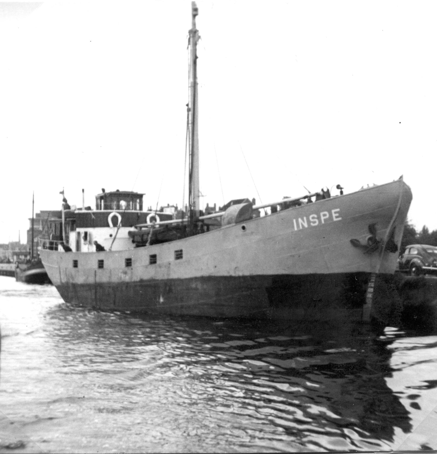 Op 27 mei 1948 in de vaart. Op de boeg staat de naam gespeld als INSPE |