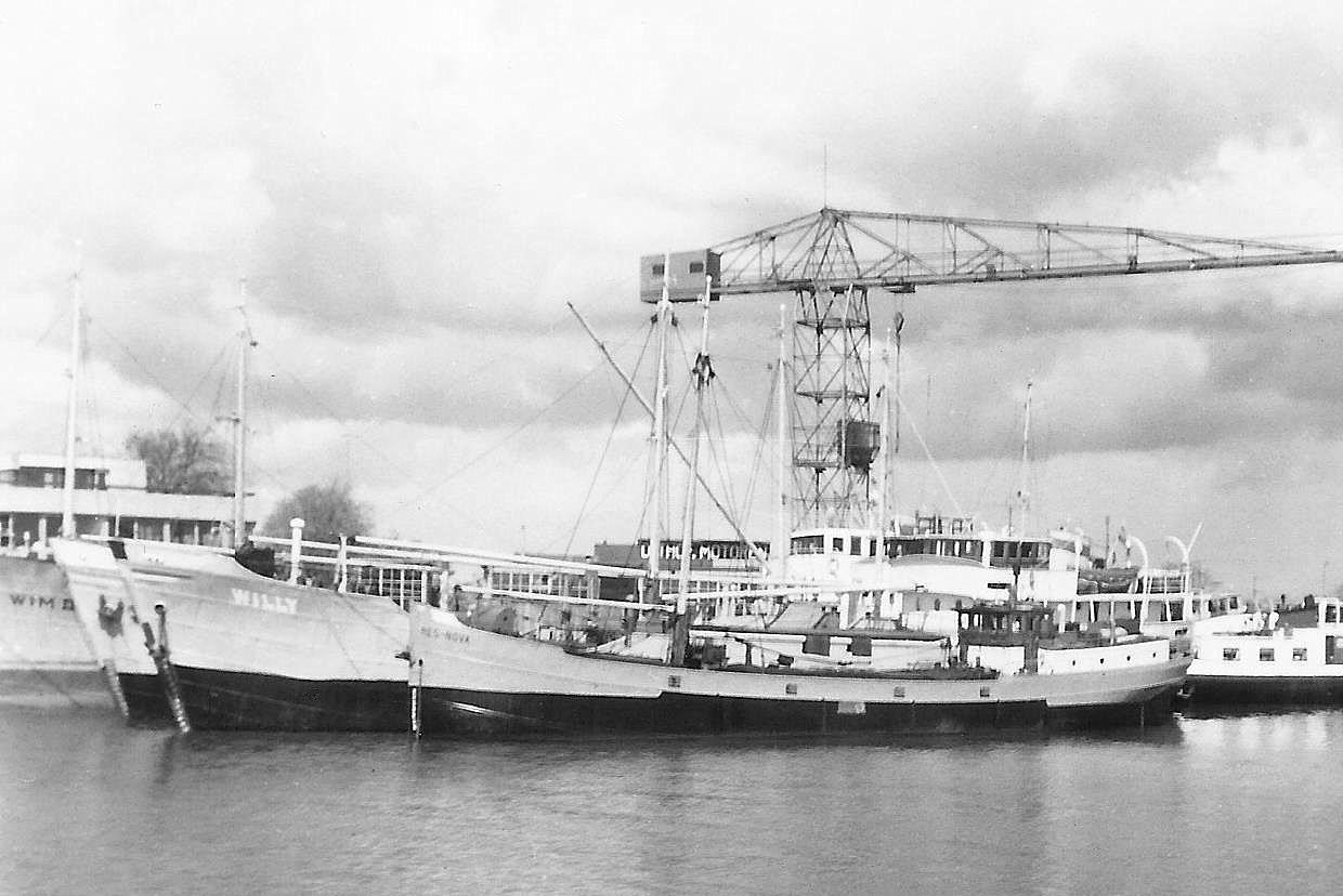 De RES- NOVA, samen met de WILLY, ?? en de WIM II bij Motorenfabriek Olthof in Capelle a/d IJssel in de midden zestiger jaren. |