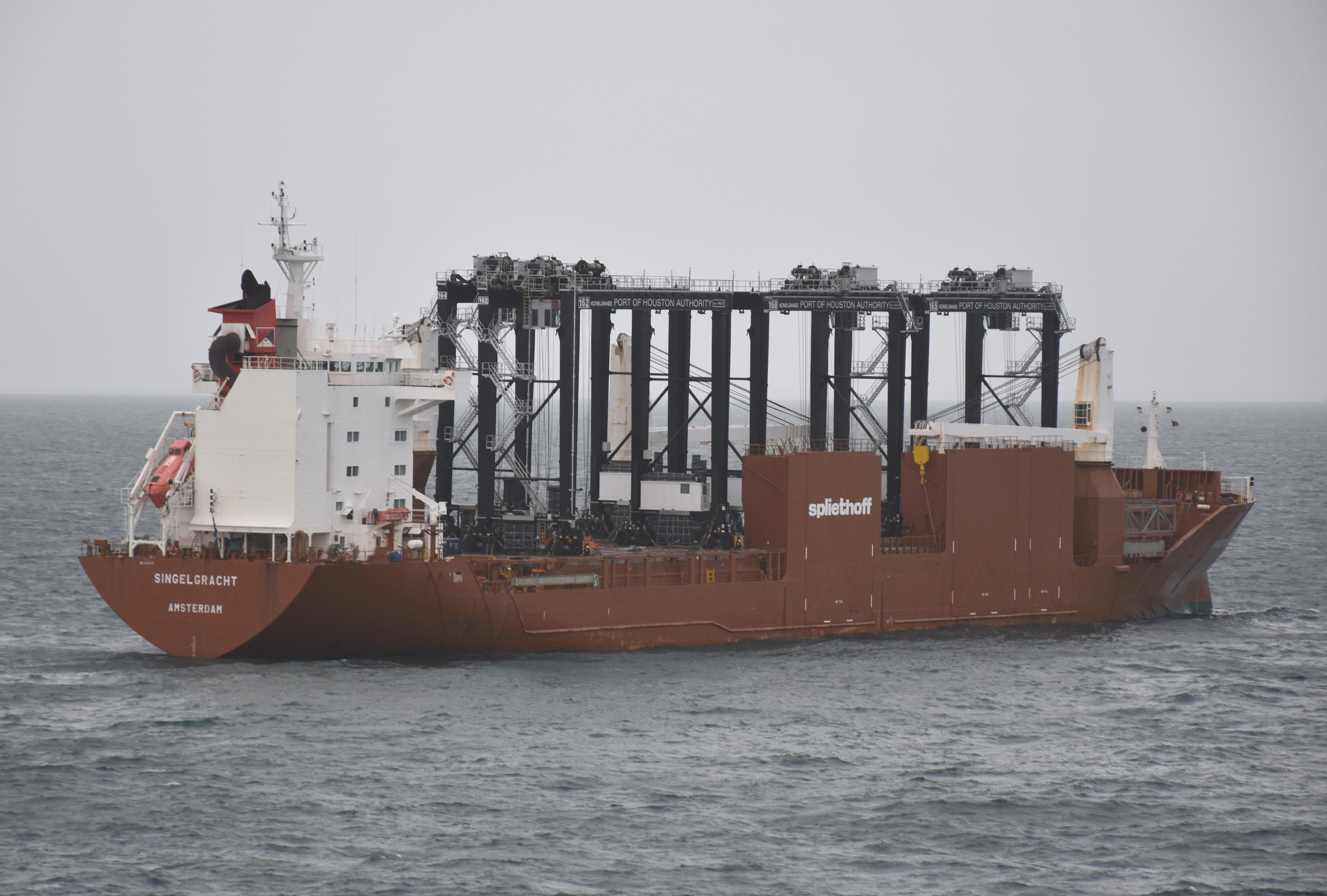 Singelgracht inbound Eemshaven on 28 January 2018 with new scrubber installation. |