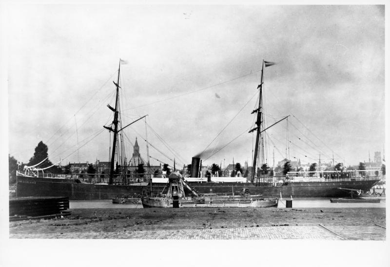 - 1891 van het ijzeren schroefstoomschip “Schiedam” ex San Marcos, gebouwd in 1874 te Dumbarton, 2850 ton o.m., varend voor de Ned. Amerik. Stoomvaart Maatschappij te Rotterdam;