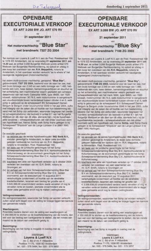 Blue Star en de BLUE SKY op 29-09-2011 opgelegd te Harlingen. |