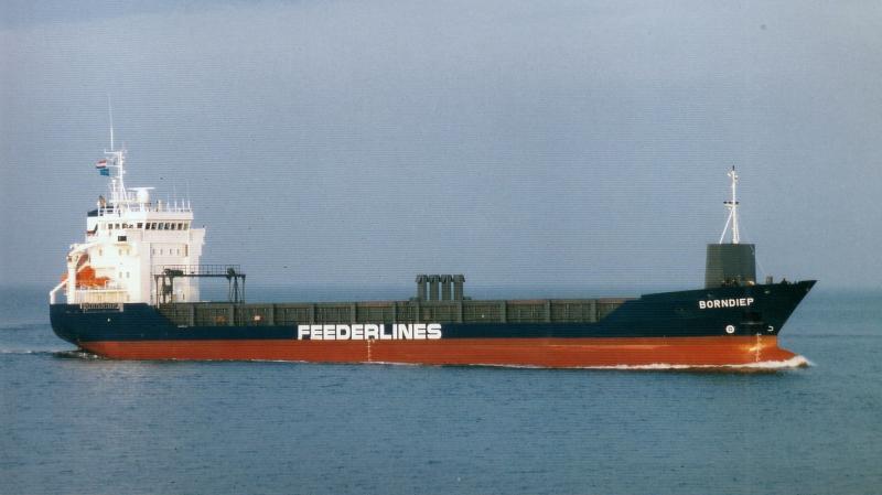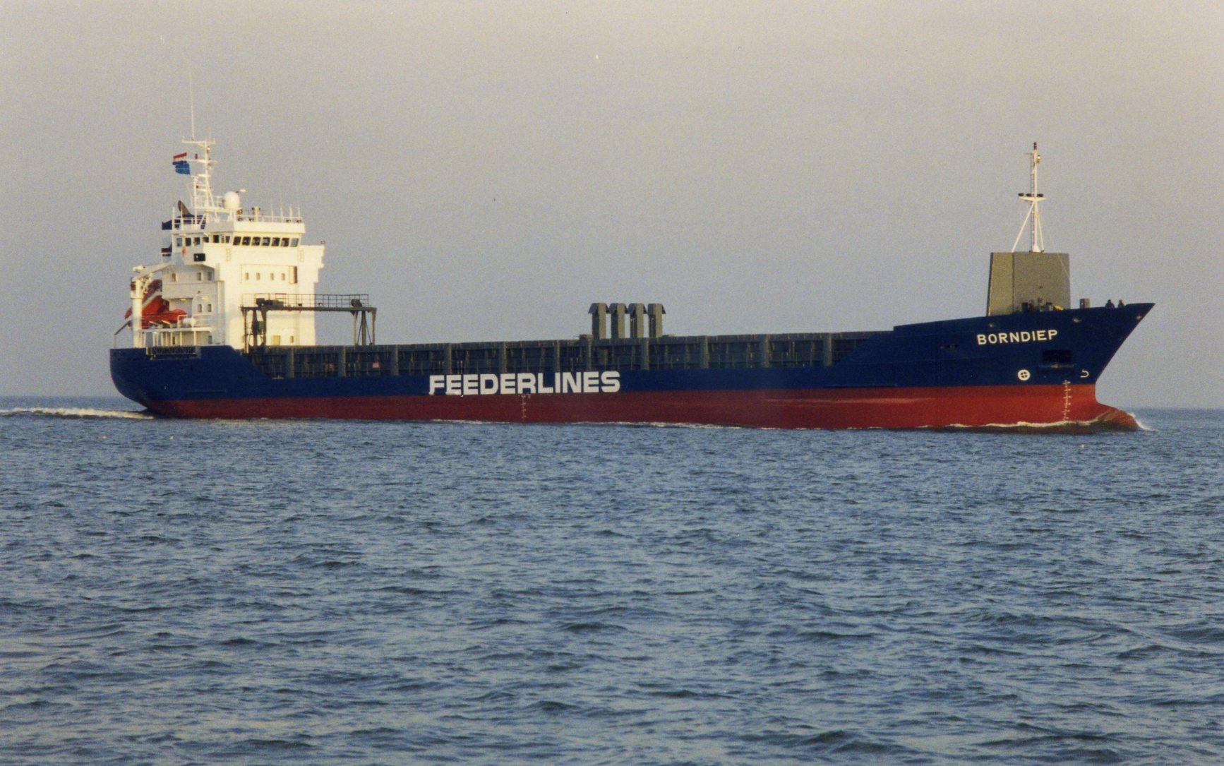 BORNDIEP op 15 februari 1998 tijdens de afbouw bij de Pattje Assemblagewerf in de Eemshaven. |