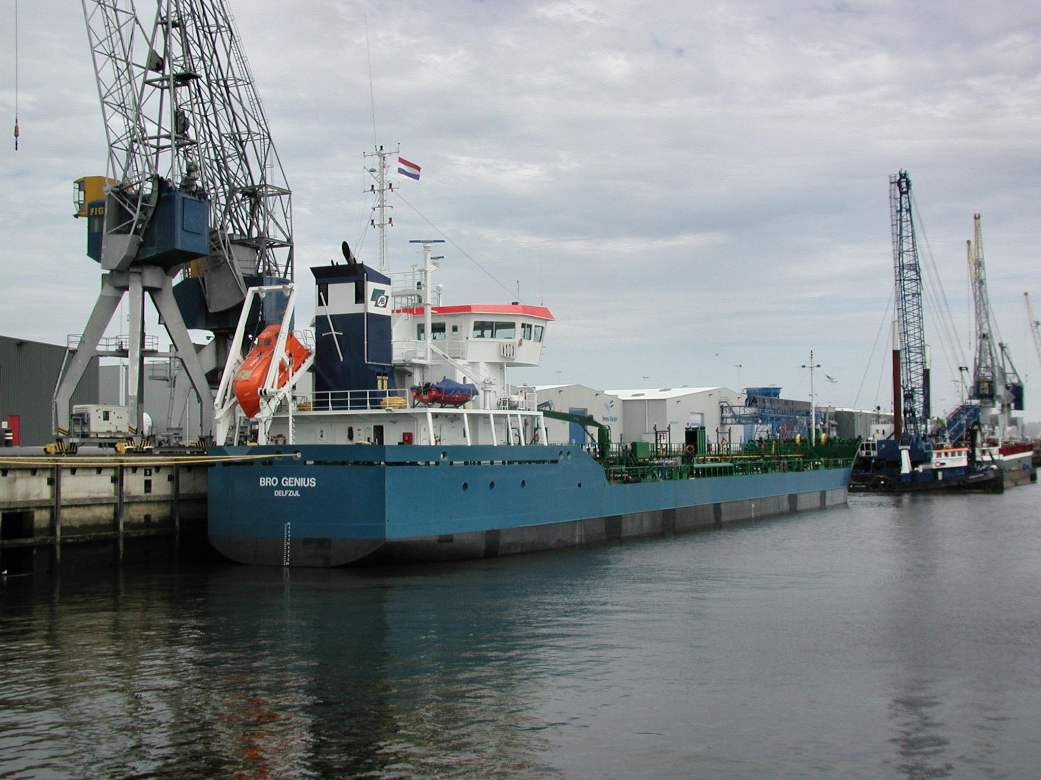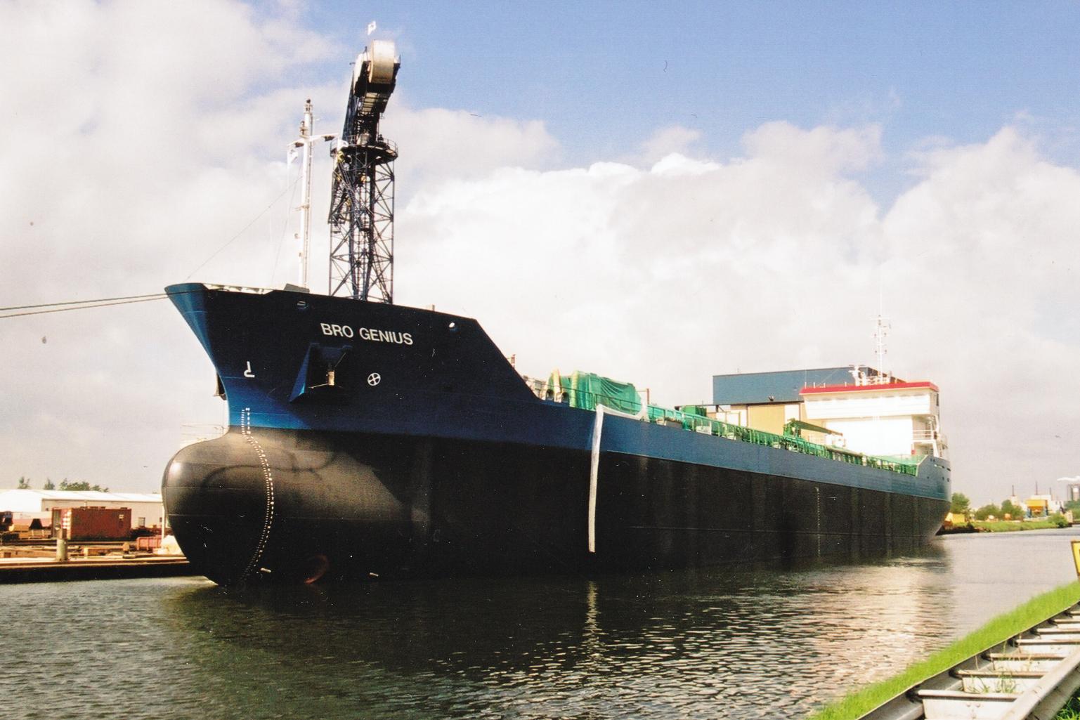 BRO GENIUS op 07-01-2007 langszij het dok van Scheepswerf Koninklijke Niestern Sander in Delfzijl. |