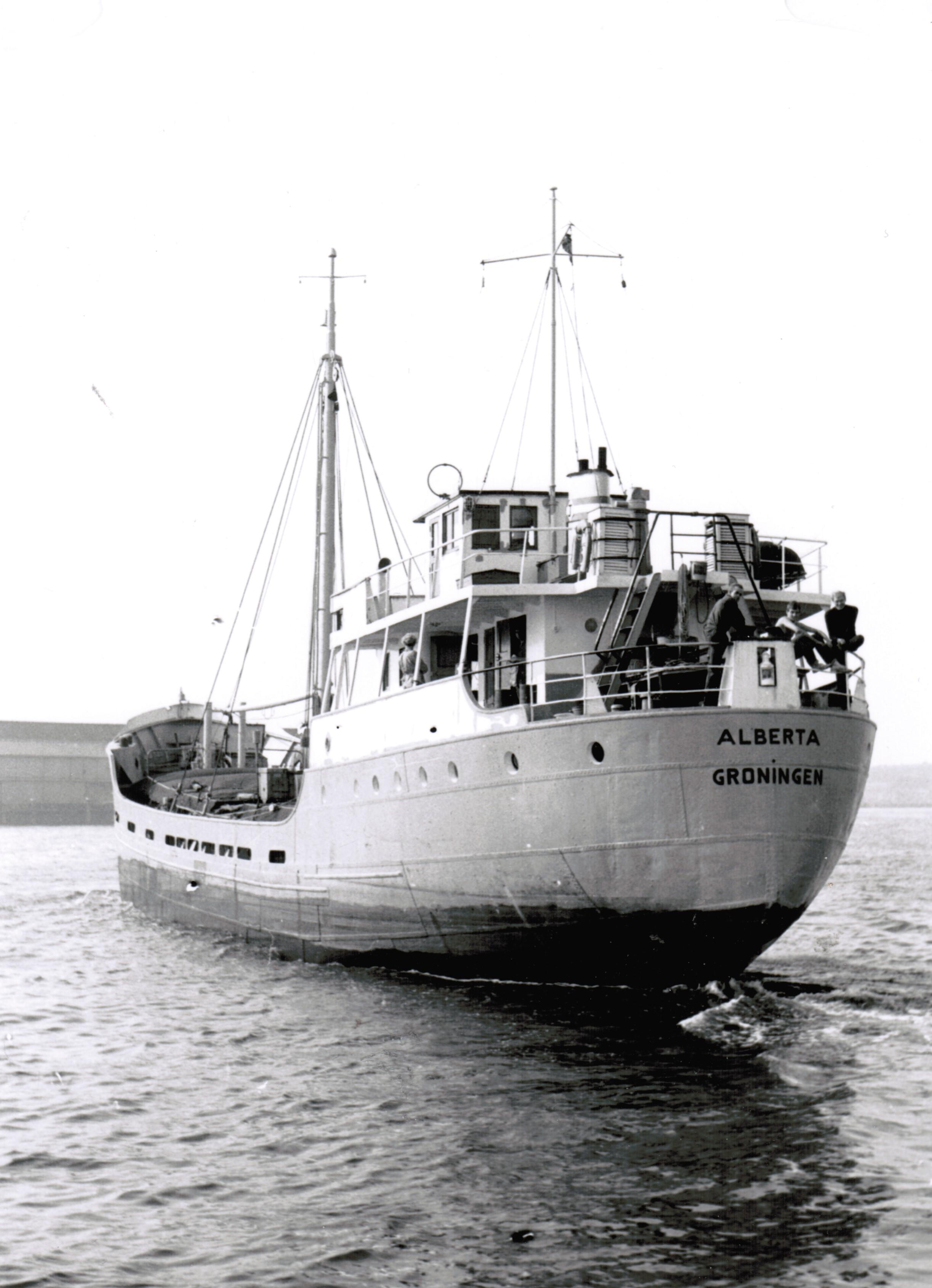 NvhN 01-02-1958: Het ongeluk met de Alberta. Bevoegdheid kapitein 2 maand ingetrokken. De Raad voor de Scheepvaart heeft de 46-jange kapitein-eigenaar T J uit Groningen van de 279 brt metende kustvaarder Alberta gestraft door hem de bevoegdheid om als kapitein te varen te ontnemen voor de tijd van twee maanden. Op 10 augustus van het vorig jaar was het schip tijdens slecht zicht op de grond gestoten te hoogte van South Carr aan de ingang van de Firth of Forth (Schotland). De Raad was van oordeel dat stoten te wijten is aan de schuld van de kapitein, die in ernstige mate in zijn navigatie die op onbetrouwbare en onjuiste grondslagen berustte, te kort is geschoten, en waarbij iedere controle werd verzuimd terwijl met te grote snelheid werd gevaren. Het gevolg was dat de Alberta buiten het veilige vaarwater te dicht bij de Schotse kust is gekomen. Het schip stootte twee maal, waarbij het ernstige bodemschade opliep. Het mag als een gelukkig verder verloop worden beschouwd, aldus de Raad, dat de Alberta daarbij niet is vastgelopen en het de kapitein is gelukt om, na zijn vaart tot langzaam te hebben verminderd en over bakboord tot 90 gr. rechtwijzend te zijn gedraaid, zijn schip zonder verdere evenementen in dieper water terug te brengen en zijn reis naar Grangemouth te volbrengen. De hoofdinspecteur voor de Scheepvaart had de Raad voorgesteld de kapitein zijn bevoegdheid voor drie maanden te ontnemen.