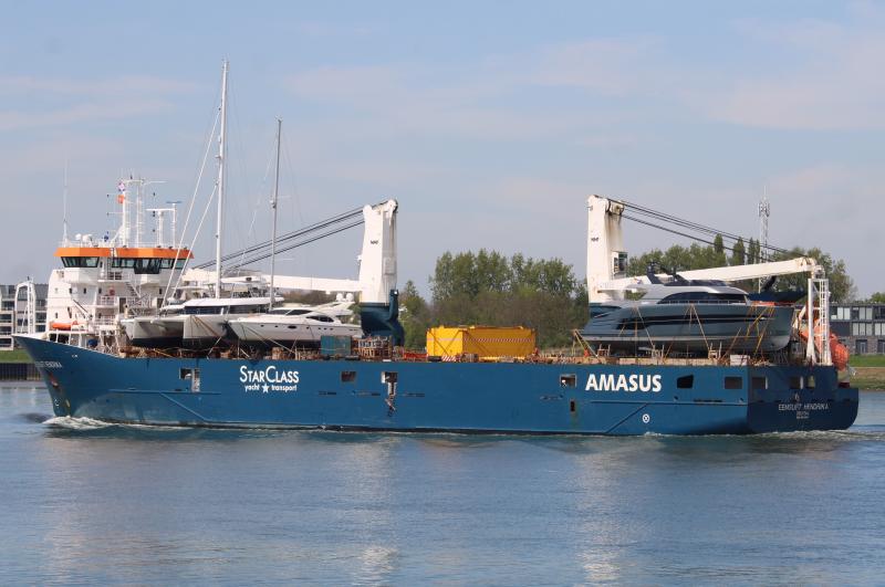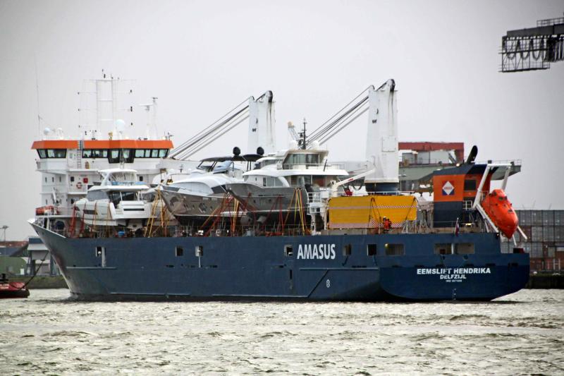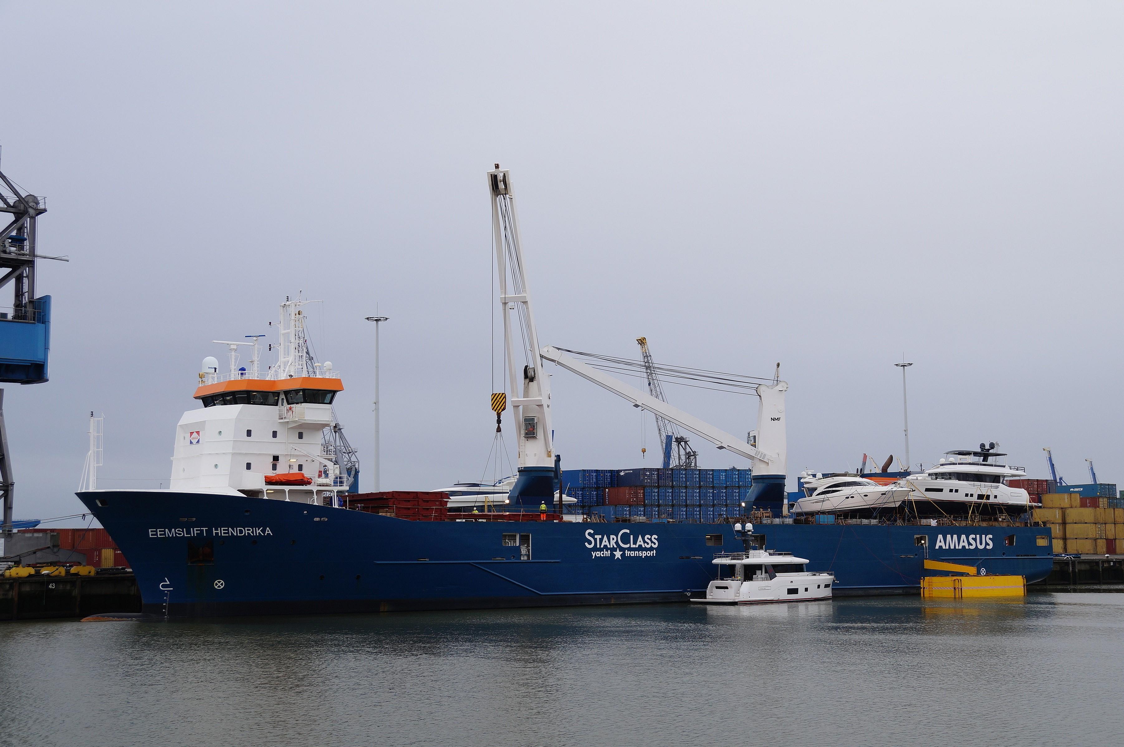 EEMSLIFT HENDRIKA op 06-07-2019 laden van jachten in Rotterdam |