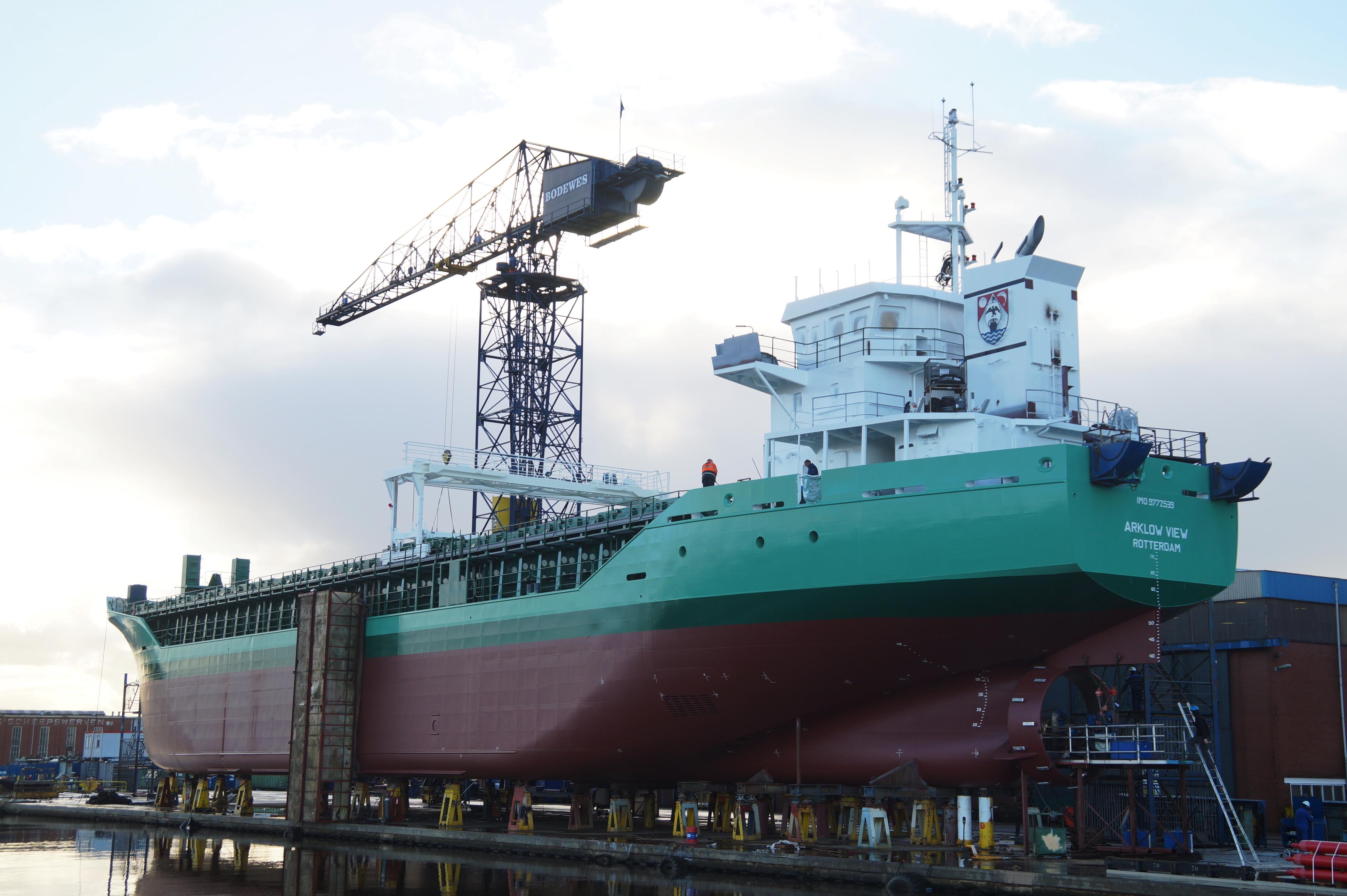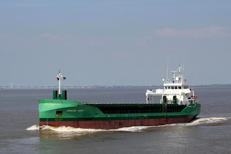 Arklow View departing Delfzijl for seatrials on River Eems on 23 February 2016. |