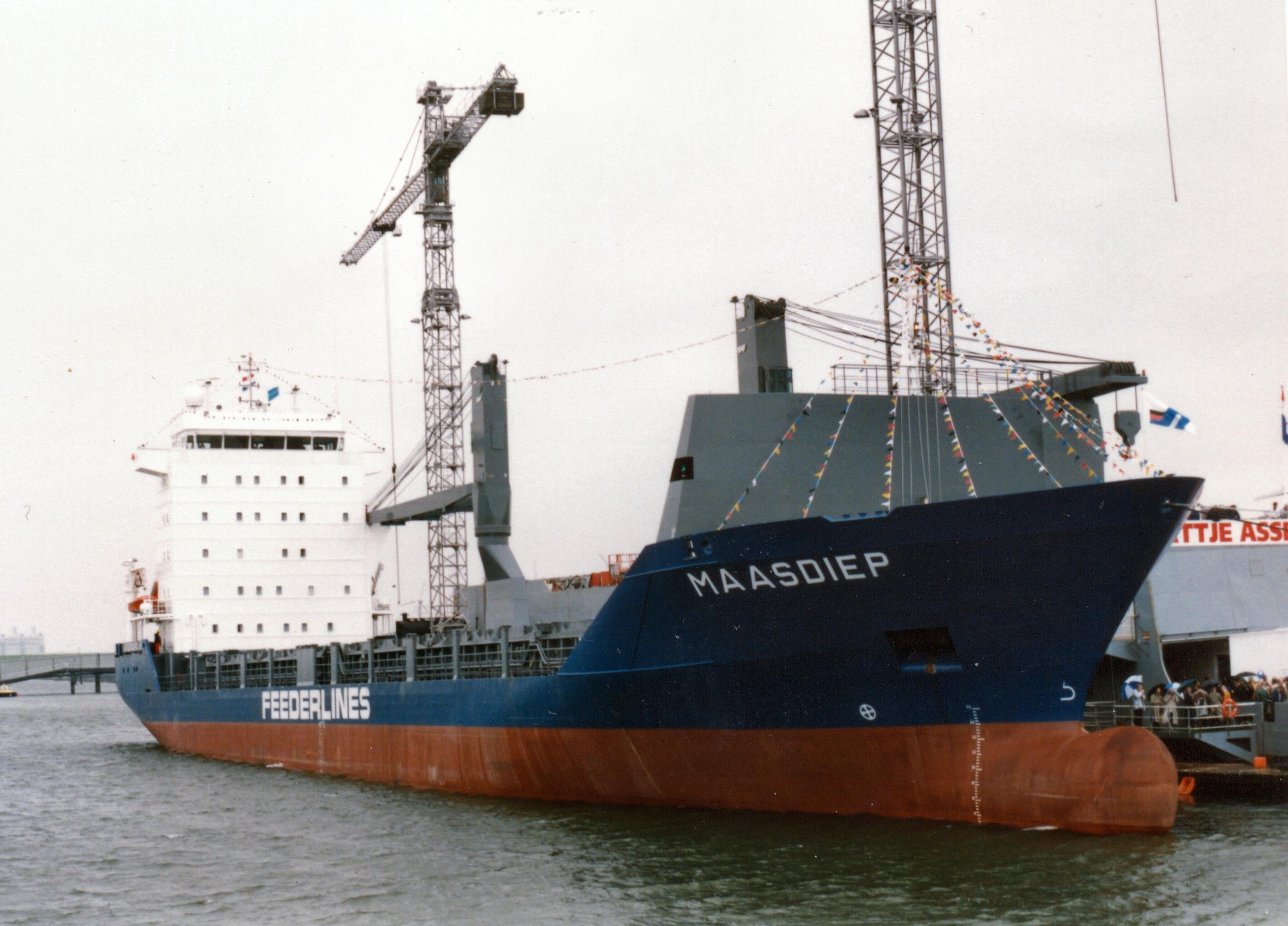Casco als "MAASDIEP"gebouwd door Scheepsbouw Alblas B.V. te Hendrik Ido Ambacht (9570), 06-03-1997 te water gelaten, 12-03-1997 verhaald naar de assemblagewerf van Pattje Shipyards B.V., Eemshaven voor afbouw, 13-03-1997 opbouw geplaatst, 15-03-1997 kranen aan boord gezet, 06-06-1997 technische proefvaart, 26-06-1997 als "MAASDIEP"opgeleverd door B.V. Scheepswerf "Waterhuizen" J. Pattje, Waterhuizen (393) aan C.V. Scheepvaartonderneming m.s. "Maasdiep", Groningen, in beheer bij Feederlines B.V. Onmiddellijk daarna hernoemd in "CIELO DEL BRASILE".