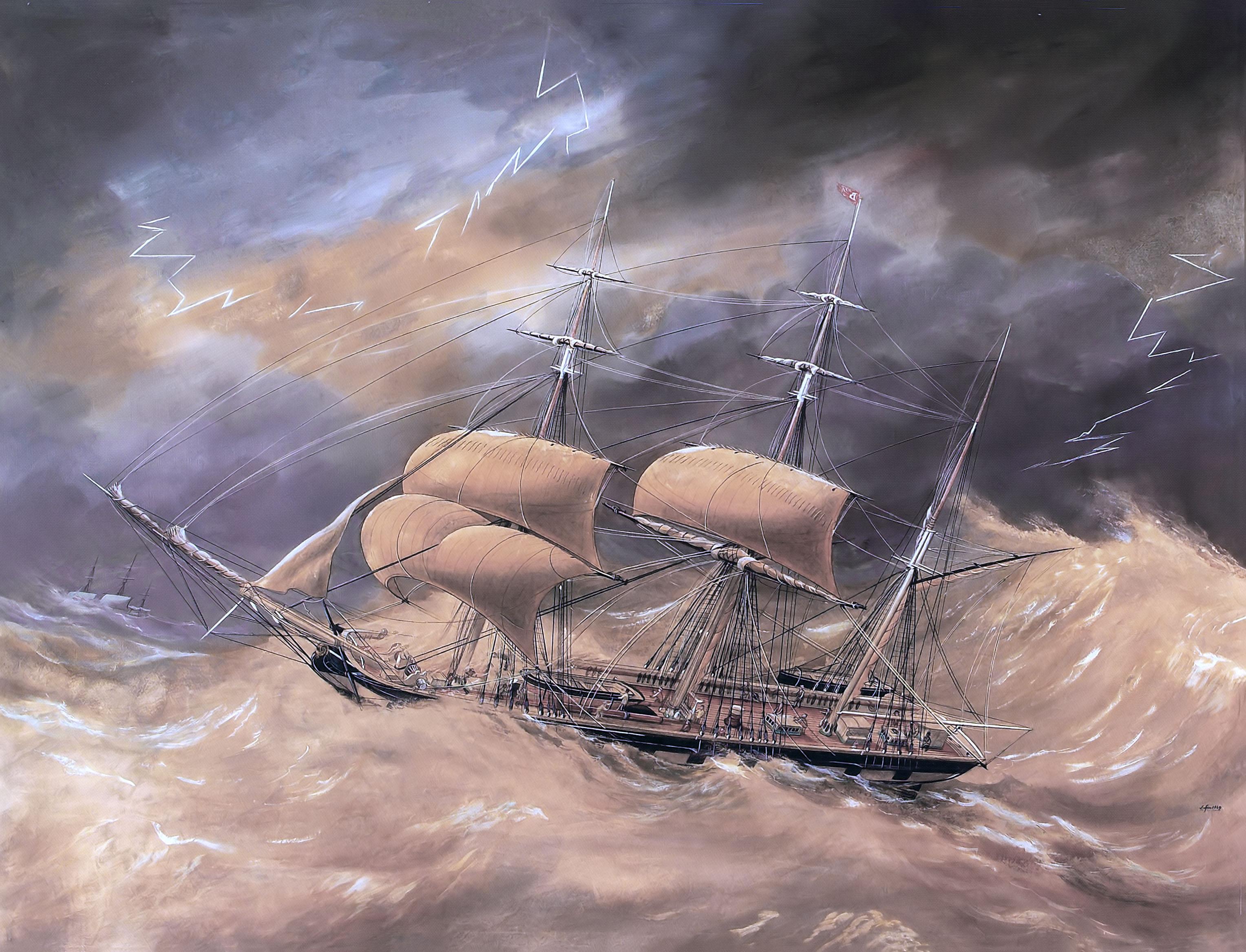 “Bij mijn grootmoeder in “het salon” hing een aquarel….voorstellende de driemastbark Baltimore voor Dungeness, kapitein G.H.Brakke….”