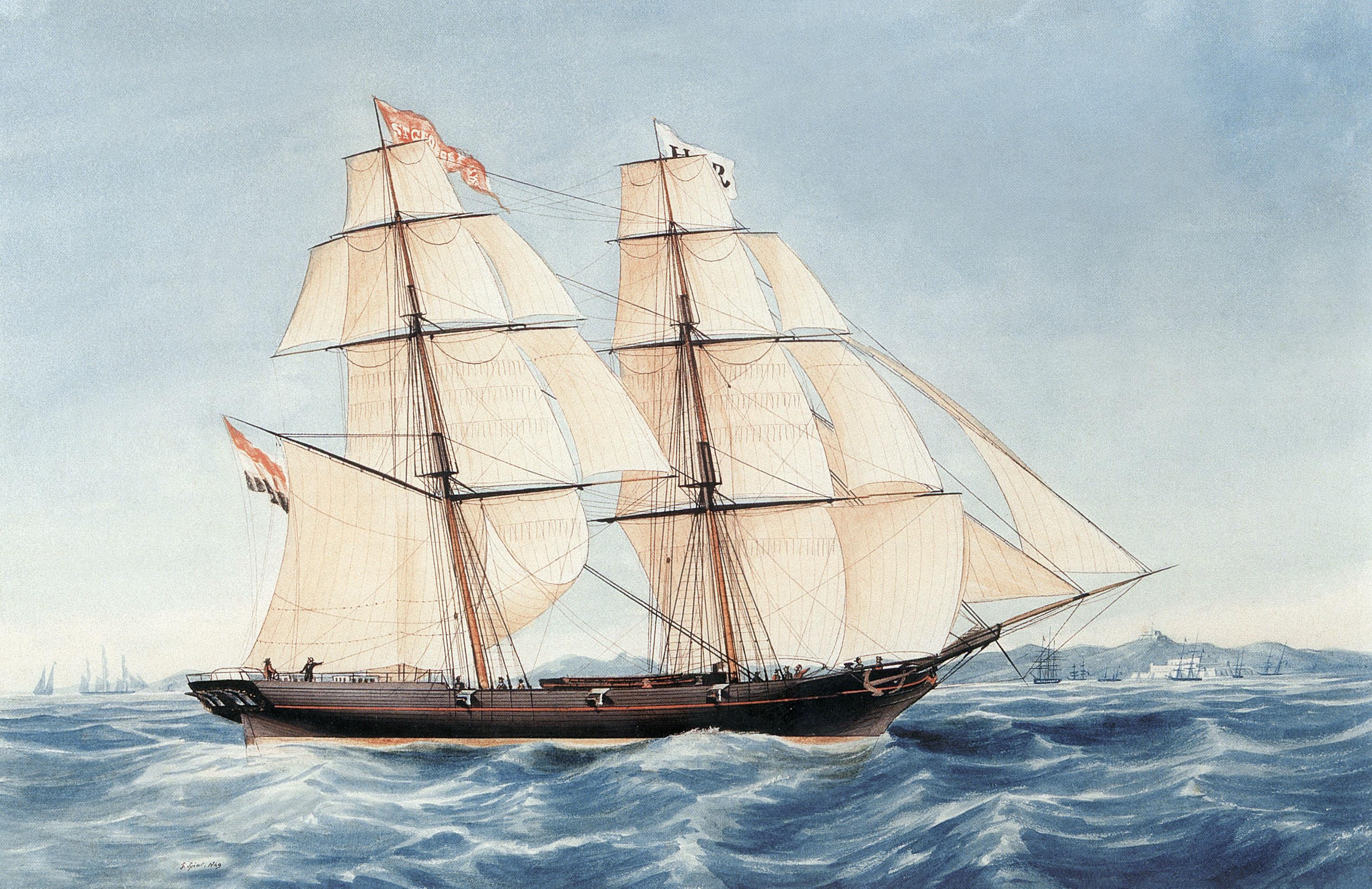 * 1850 t/m 1852 van de brik “St.George de la Mina”, gebouwd in 1849 te Rotterdam, 188 ton o.m., varend voor H. van Rijckevorsel te Rotterdam;