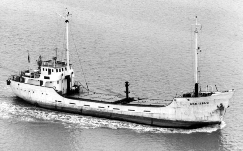 De CON-ZELO onder Engelse vlag. |