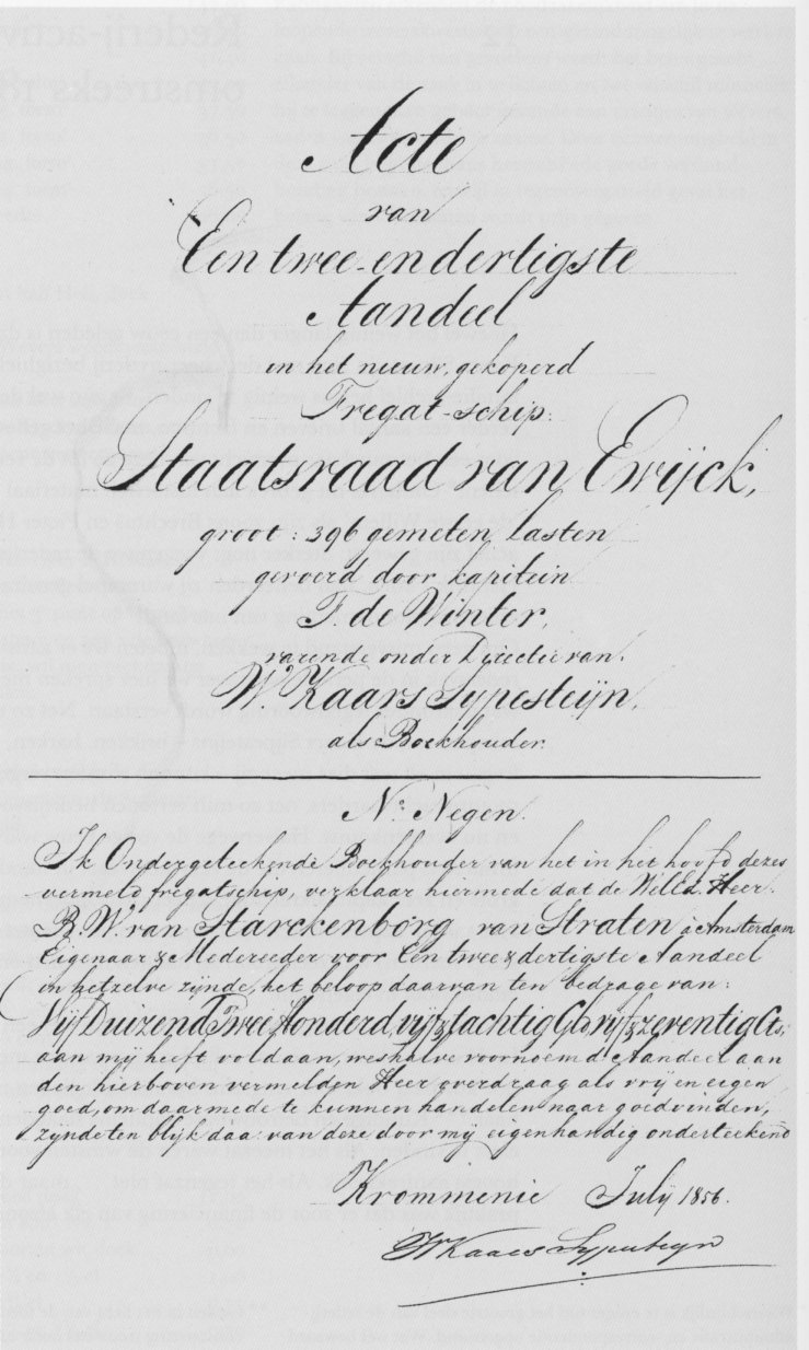 * 1858, 1859 fregat “Staatsraad van Ewijck” 396 last voor W.Kaars Sypestein te Krommenie