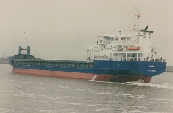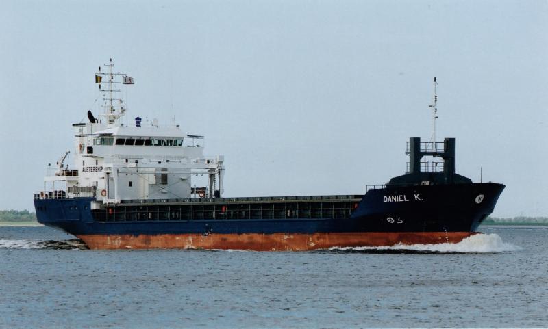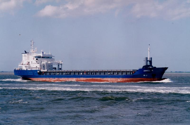 DANIEL K. verlaat Delfzijl voor Wilhelmshaven op 13-02-2012. |