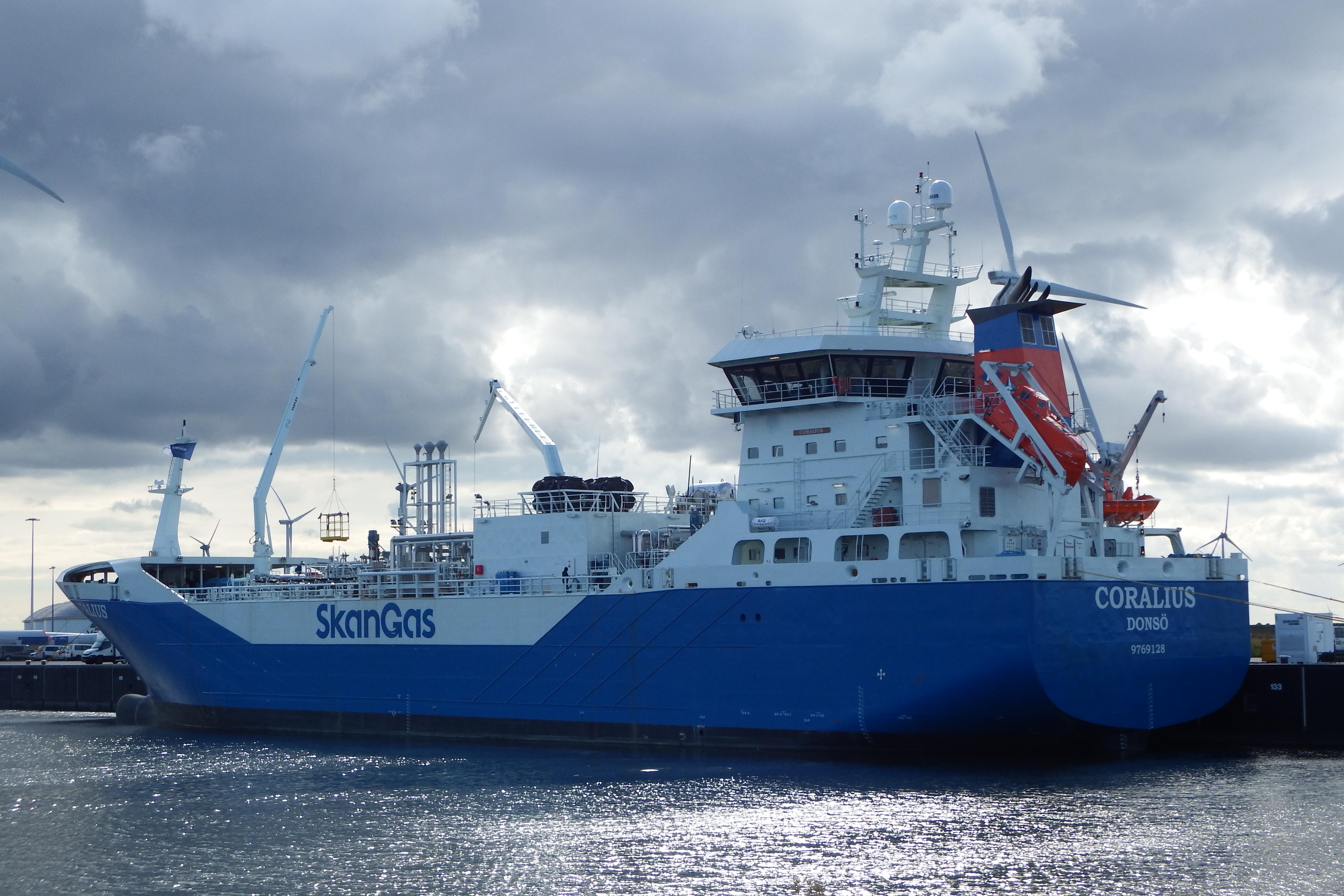 CORALIUS gemeerd in de Eemshaven onder Zweedse vlag op 29-08-2017. |