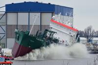 THUN BRITAIN vertrekt uit de Eemshaven voor haar 1e proefvaart op de Eems op 9 maart 2022. |