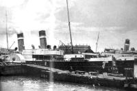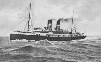 De DUITSCHLAND werd in 1916 verdoopt in ZEELAND. Op nevenstaande foto vaart het schip als ZEELAND na de 1e wereldoorlog. De schoorsteen was intussen voorzien van de rood-wit-blauwe band, kleuren, die de rederij daarna tot het einde van haar bestaan op haar schepen zou blijven voeren. |