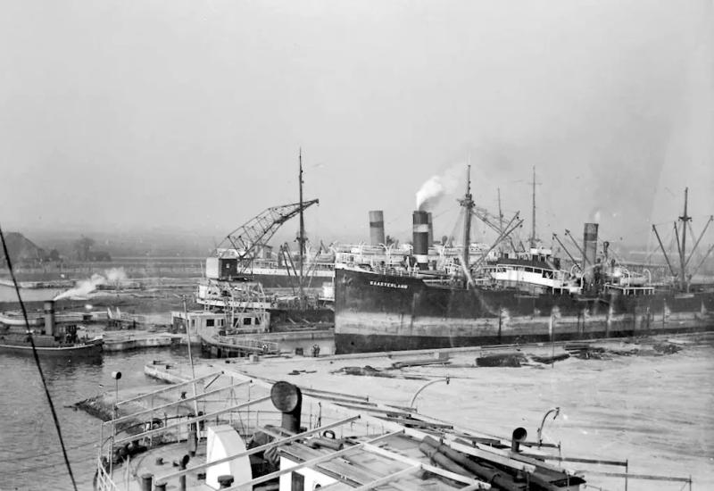 GAASTERLAND aankomst te Amsterdam 1920, eerste reis onder Nederlandse vlag
