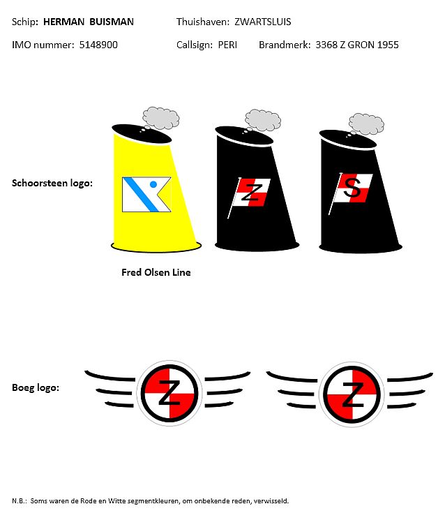 HERMAN BUISMAN met in de schoorsteen het logo van de Fred Olsen Line (charter) |