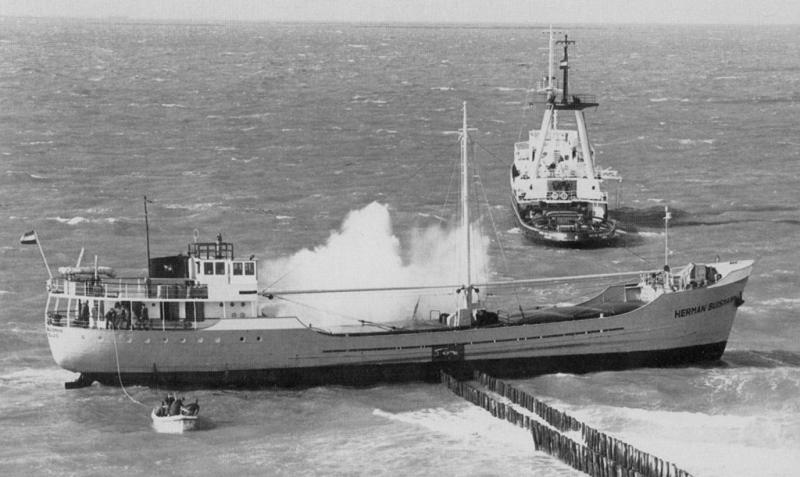 HERMAN BUISMAN op de helling bij Scheepswerf Van Goor & Spiekman te Zwartsluis (foto omstreeks 1960) |