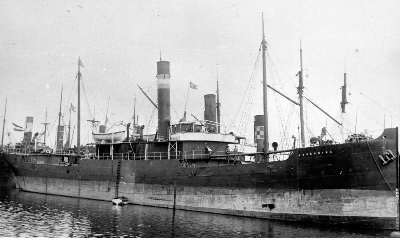 * 1907 van het stalen stoomschip “Alwina”, gebouwd in 1906, 1115 ton bruto, varend voor de Hollandsche Gulf Stoomvaart Maatschappij te Rotterdam. In 1908 e.v. staat het schip onder commando van kapitein D. de Graaf.