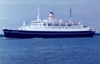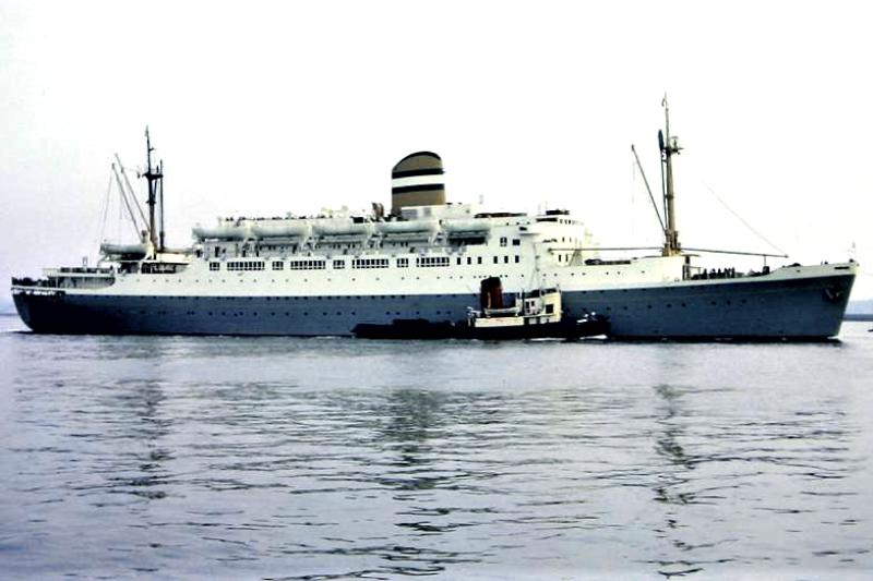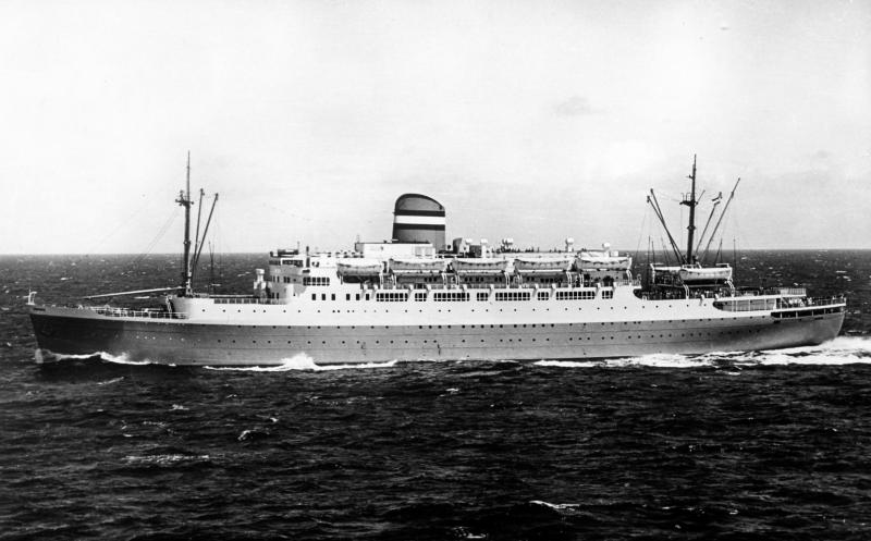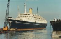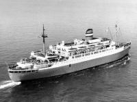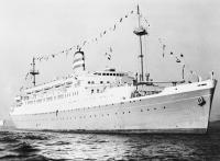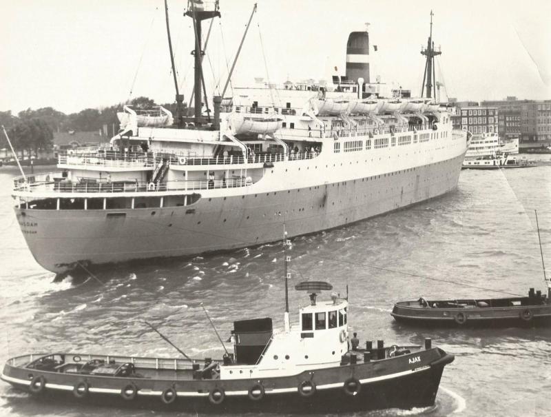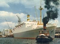 MAASDAM op de helling van de bouwwerf (uit Gedenkboek Wilton-Fijenoord, 1954) . |