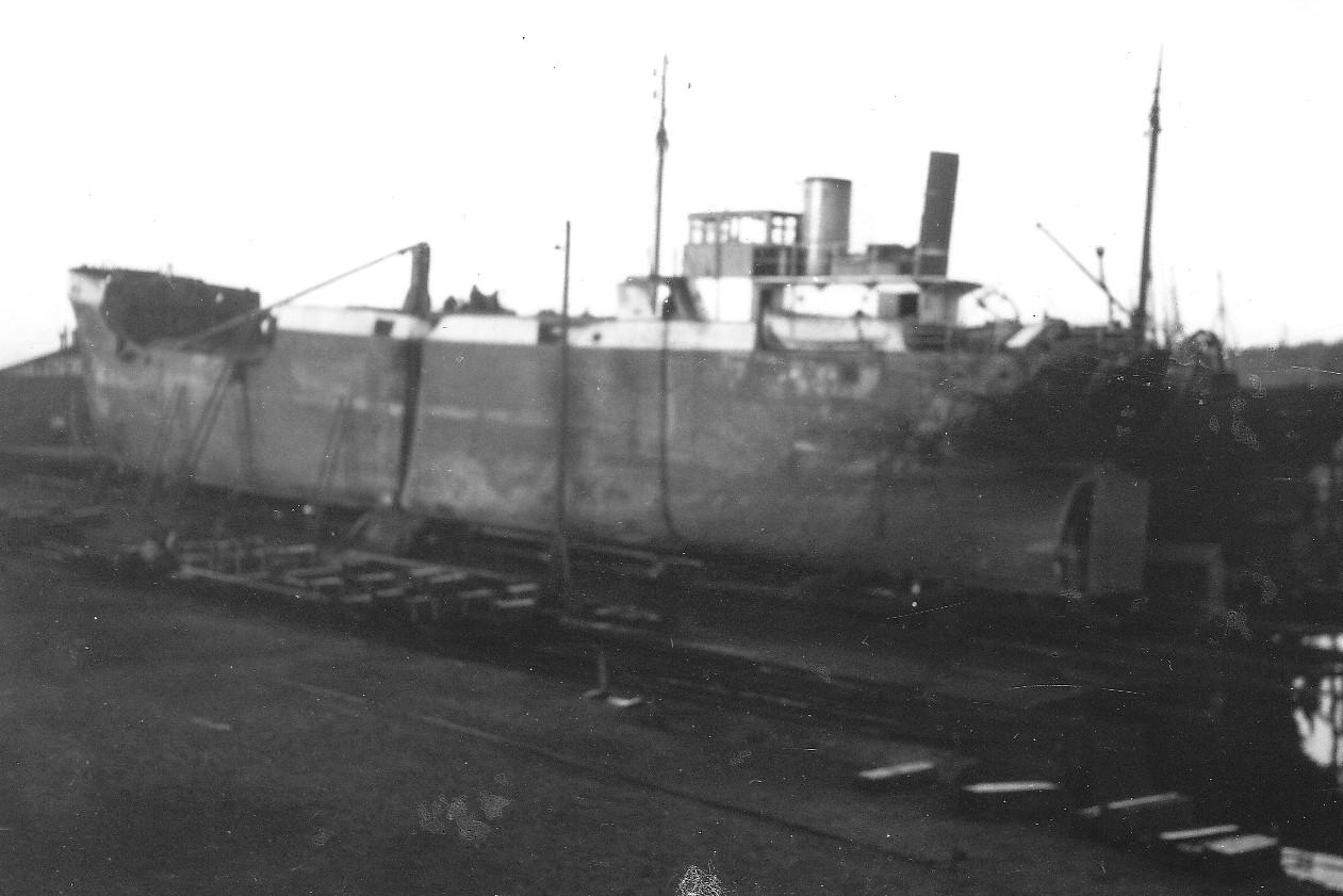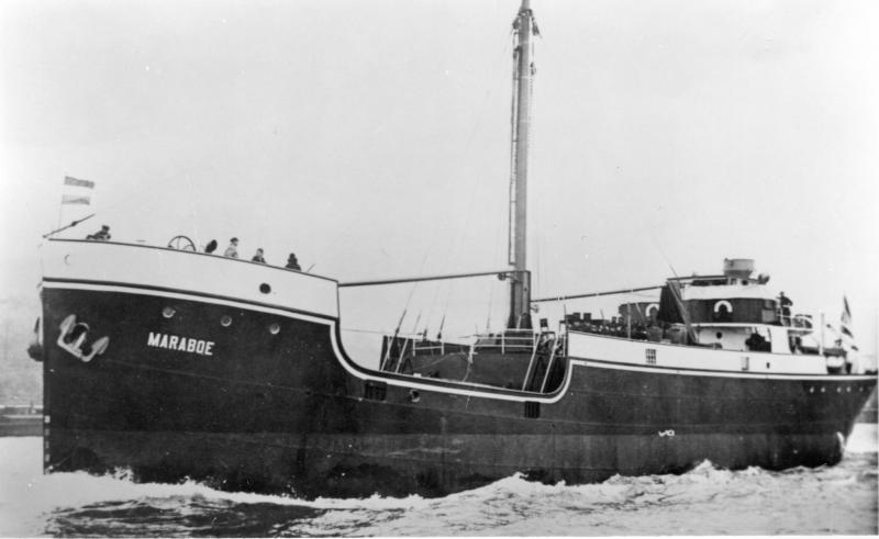 Sumatra Post 22-12-1932: De Maraboe op de rotsen. Slecht weer aan de lersche kust. Vrijdag 2 December 1932 is in de Rotterdamsche haven een klein bootje binnengekomen, de MARABOE, groot 496 ton en eigendom van de reederij Gebroeders Voskamp, welke boot in zeer critieke omstandigheden heeft verkeerd, toen zij een maand of twee geleden tijdens slecht, weer bij de Carnarvenbay in Ierland aan den grond liep. Direct na aankomst van de boot is de N.R. Ct. eens gaan hooren, wat men alzoo meegemaakt had en dit blijkt heel wat geweest te zijn. Het kleine, stevig gebouwde scheepje, dat onder commando stond van kapitein H. K. v. d. Meer, tornde moeizaam tegen het zware weer op met bestemming naar Carnavonbay om daar een lading steenen in te nemen. Daar ter plaatse ontbreekt iedere havenaccomodatie, zoo vertelde de le machinist M. Nederlof, die bij afwezigheid van den kapitein het woord deed, en er bevindt zich een primitief aanlegsteigertje, zoo maar op het strand. Wij moesten daar meeren om de lading steenen — wij kwamen uit Wexford in lerland met bestemming Liverpool —in te nemen. Er was niemand aanwezig om den tros aan te pakken en dus moesten we het op ons eigen houtje maar probeeren. Wij manoeuvreerden zoo goed en zoo kwaad als het ging, maar de windvlagen dreven ons af en op het laatst kwamen wij hoe langer hoe hooger op het strand te zitten. Ik was in de machinekamer en dacht, dat de boot telkens tegen het aanlegsteigertje aanbonkte en dat dit wel wat erg lang duurde. Maar toen ik boven kwam, zag ik dat we op het strand, waarop groote keien liggen, vastzaten. Bij vallend water kon je om de schuit heen loopen, zoo’n verval is er daar en omdat de kop en de staart op groote steenen rustten, kon men onder de heele schuit doorkijken. We probeerden met een sleeptros en met een werpanker los te komen, wat ons niet lukte. Door het stooten op de steenen was er een groot gat in de machinekamer gekomen die daardoor volliep en daar zaten we, zonder eigen kracht overgeleverd aan de golven, die ons schip onbarmhartig op de keien bonkte. We hebben toen scheepsraad gehouden, waarin besloten werd om hulp te gaan telefoneeren. Daarvoor werd een reddings boot uitgezet, waarin de kapitein, twee walmenschen en mijn persoon plaats namen om te probeeren het land te bereiken. Door een zware golf werd de reddingsboot op het land gegooid en sloeg om zoodat wij een nat pak haalden. Toen moesten we tegen de rotsen opklauteren, want de telefoon bevond zich in een huisje boven op de rots. Na een uur klimmen bereikten wij den top en wij hebben toen een sleepbootenbureau opgebeld om assistentie. Er kwan anderhalve dag later een sleepboot opzetten, die ons heeft losgeleept waarna duikers de grootste gaten hebben gedicht zoodat wij met de pompen dag en nacht aan ‘t werk, de haven van Holyhead konden bereiken, net op tijd, want net weer zou nog ongunstiger voor ons worden en dan waren we aan gruizelementen geslagen. Gedurende vier dagen hebben we op goed weer gewacht, terwijl de duikers onder de waterlijn de gaten dichtten- Eindelijk hebben we Liverpool bereikt. We hebben bijna een geheel nieuwe kiel gekregen en alles in de machinekamer, die geheel onder water heeft gestaan moest gedemonteerd worden. Zoo zijn we eindelijk met de lading steenen in Londen aangekomen en vandaar wel een lading lijnkoeken naar Aalborg. vandaar leeg naar Rostock en tenslotte met een lading graan naar hier. U ziet, dat we een emotioneele reis gehad hebben en gedurende eenige uren is de toestand zeer critiek geweest. Ook de reddingsbooten die uit Port Dinnilyn kwamen hebben bij de berging getracht een werpanker uit te brengen, maar zij moesten onverrichterzake terug keeren omdat ze zagen dat ze het niet klaar konden spelen. U ziet dus, dat we er werkelijk slecht voor gestaan hebben, want een luikhoofd was ook al gescheurd. Vanmiddag vertrekken wij weer. (zie foto's) |