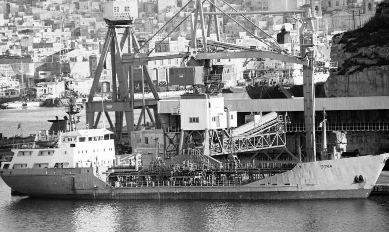 DORA, op de boeg is de ex-naam MARE NOVUM zichtbaar, het is echter onduidelijk in welke periode het schip de naam DORA heeft gevoerd. |