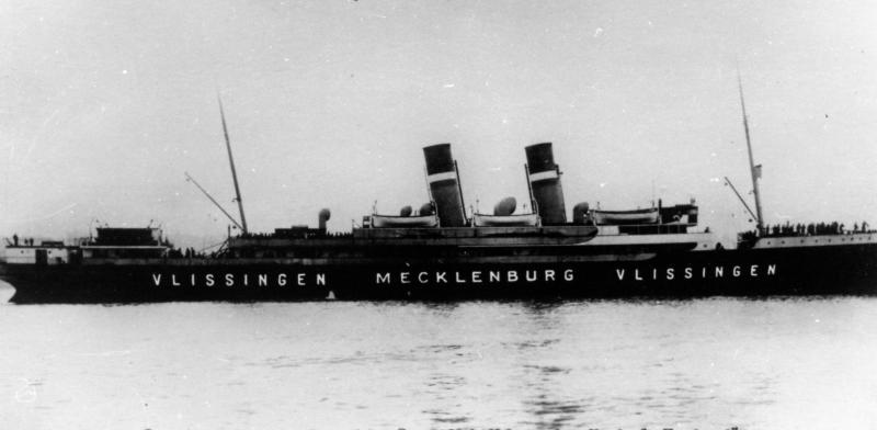 Vlissingen, 21 december. De derde nieuwe mailboot van de Maatschappij ‘Zeeland’, het stoomschip MECKLENBURG is heden van Glasgow hier aangekomen en nam ligplaats in de binnenhaven om daar, evenals het zusterschip ORANJE NASSAU, verder te worden afgetimmerd.