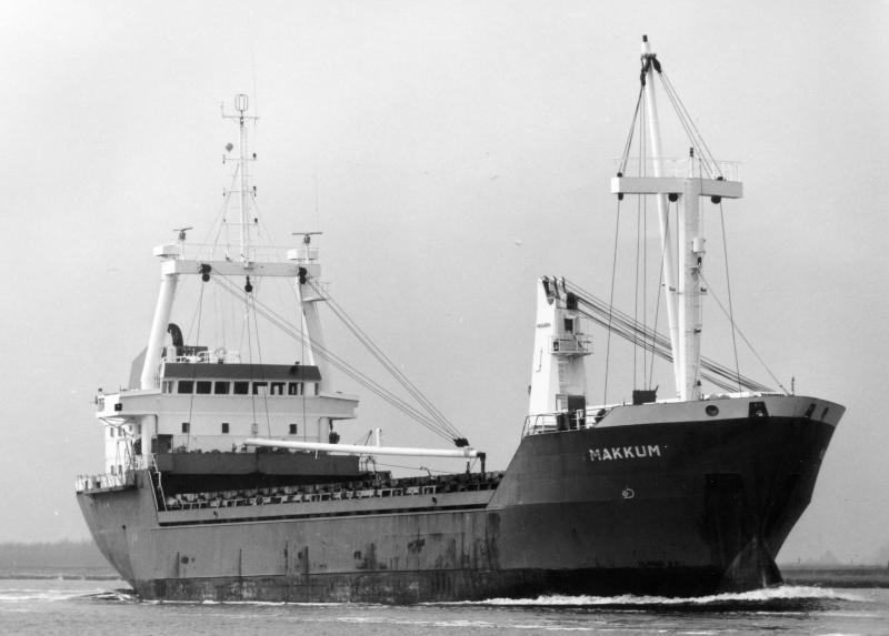 TADORNE II, ex MAKKUM, met nieuwe naam en thuishaven op de achtersteven en Holwerda-logo van de schoorsteen verwijderd |