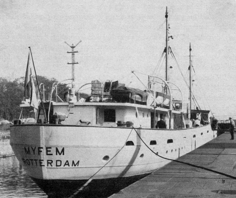 28.11.1952 Uitspraak van de Raad van de Scheepvaart. Inzake de ontploffing aan boord van het m.s.”MYFEM” tijdens het opvaren van de Seine. Uit de verklaringen en bescheiden is de Raad het volgende gebleken. Het motorschip “MYFEM” is een Nederlandse schip, toebehorende aan de Transport-en Handelmaatschappij D. Lijnzaad N.V. te Rotterdam. Het schip, dat in 1952 te Zaltbommel is gebouwd, meet 472 bruto register ton en wordt voortbewogen door een 395 PK motor. Op 09.07.1952 laadde de “Myfem” te Cardiff 517 ton kolen, bestemd voor Rouen. De kolen bestonden uit kleine stukjes en leken op anthraciet. Het schip heeft twee luiken, maar geen schot hiertussen. Het ruim was niet geheel vol, de bovenkant van de lading lag ongeveer een halve meter onder het dek. Voor luik 1 bevinden zich twee luchtkokers en achter luik II eveneens twee. Op 9 Juli vertrok de “Myfem” en ontscheepte te 20.40 uur de loods op Barry Roads. De bemanning bestond, inclusief de kapitein, uit 12 personen, terwijl de echtgenote van de kapitein en hun vierjarige dochtertje als passagier meevoeren. De diepgang was voor 30 dm, achter 3dm. Gedurende de reis naar Rouen ondervond men meest lichte westelijke wind en deining. Het schip was beweeglijk. Daar het schip vrij laag is en spoedig buiswater overneemt, worden op zee als regel de luchtkokers afgenomen en de potten afgedicht. Dat werd ook deze reis gedaan, maar van tijd tot tijd werden de zeildoekse kappen afgenomen om te ventileren. Men heeft niet van gaslucht gemerkt. Om 11 juli, te 13.00 uur, werd op de rede van Le Havre een loods overgenomen en onder diens aanwijzing voer men de Seine op. Het was goed weer, de zon kwam door, maar het was niet warm. Tijdens het opstomen gaf de kapitein de stuurman order het schip losklaar te maken. De luiken waren gesloten en afgedekt met dubbele presennings, de luchtkokerpotten waren gedicht. De matroos B, die te 15.00 uur van de stuurman de order kreeg het schip losklaar te maken, ging naar het voorschip en vroeg de bootsman, die bezig was onder de bak, om de electrische stroom over te schakelen van de ankerlier naar de voordeklier. Nadat dit was gebeurd, zette B. deze lier te werk om de reep van de trommel te halen. Hij hoorde in de schakelkast enige tikken en onmiddellijk daarop volgde een explosie in luik 1, waardoor sluitbalken, presennings en luiken in de lucht vlogen. Een aan de voorkant uit het luik slaande steekvlam trof B, die daarop de vlucht nam. De kapitein was even tevoren naar het kantoor gegaan om de papieren voor de loods te tekenen en hoorde daar een ontploffing. Hij liep terstond naar het achterdek, maar was nog niet buiten, toen een tweede explosie plaats vond. Aan dek gekomen, zag hij, dat verschillende luiken van luik II weg waren geslagen, de presennings vernield waren en de laadboom uit de mik geslagen was. De presennings op de achterste sectie brandden. De kapitein ging naar de brug, stopte de motor en gaf order een brandslang op te tuigen en de brand te blussen. Het schip werd in de vloedstroom gedraaid. Toen viel het de kapitein op, mede door het roepen van zijn vrouw, dat zijn dochtertje en de 1ste-en de 3e-machinist, die op luik II hadden gezeten, verdwenen waren. De kapitein bracht zijn schip ten anker en liet de werkboot strijken om de drenkelingen te zoeken. Bovendien werd radio-telefonisch om hulp gevraagd. De brand was weldra geblust. De werkboot vond niets van de vermiste personen. De ramp had plaats gevonden te 15.15 uur. Te 16.30 uur kwamen twee sleepboten van de olie-installatie te Port Jerome en begonnen de rivier af te zoeken. Zij pikten verschillende luiken op, maar geen der vermisten. Te 17.00 uur ging de “Myfem” ankerop en vervolgde de reis. De volgende dag kwamen te Rouen verschillende experts aan boord, maar deze konden de oorzaak van de explosie niet vaststellen. Na het lossen van de lading vertrok de “Myfem” 13 juli te 13.00 uur van Rouen naar Rotterdam. Tijdens het afvaren van de Seine heeft de “Myfem”op verzoek van de wal twee keer geankerd en werden de gevonden lijken van de 1ste-en de 3de machinist geindentificeerd. Het dochtertje van de kapitein is niet gevonden. B. werd aan boord voorlopig geholpen en is toen opgenomen in een hospitaal, waaruit hij twee weken later genezen is ontslagen. Ter zitting verklaarde de kapitein,dat de kolen vers en juist van de mijn kwamen. In het Kanaal varende, heeft getuige gedurende ongeveer zes uur de kappen van de 4 potten der luchtkokers genomen; het was niet mogelijk, wegens overkomend water, op zee een luik te openen. Er zijn in totaal twee ontploffingen geweest; de eerste vond plaats, toen getuige zich in het kantoor bevond, en de tweede, toen hij zich naar dek haastte om te kijken wat er gebeurd was. Getuige kwam weldra tot de conclusie, dat er kolengas in het ruim geweest moet zijn en dat een vonk, ontstaan bij het aanzetten van de lier van luik I, dit gas moet hebben ontstoken. De kabels lopen in het ruim niet door kokers, maar worden beschermd door een plaat. Bij doorvoering naar de schakelkast van de lier lopen ze wel door een pijp, maar deze doorvoering is niet gasdicht. Er kon dus gas uit het ruim in de schakelkast komen. Bij het aanzetten hoort men altijd getik; het is getuige niet bekend of reeds in de schakelkast een ontploffing heeft plaats gehad. De eerste ontploffing vond plaats in luik I, de tweede in luik II. De lier is na de ontploffing door B. afgezet. Het oordeel van de Raad luidt als volgt: