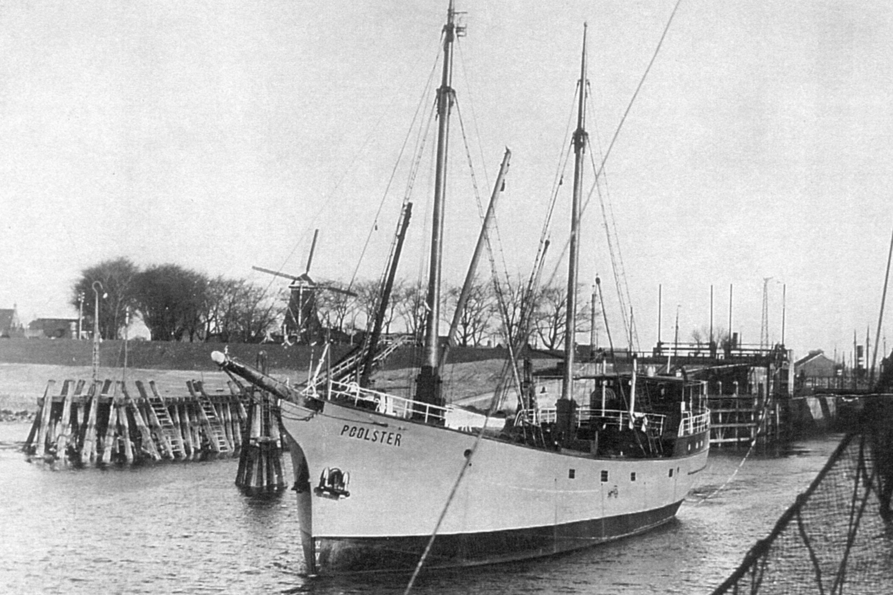 De Banier 27.09.1935: De „POOLSTER” vergaan in de Wester Eems. Vijf jonge menschen in de golven omgekomen. De storm van eergisteren heeft in de Wester-Eems een vreeselijke ramp veroorzaakt. Daar is de schoener „Poolster" vergaan en de vijf opvarenden, allen jonge menschen, zijn jammerlijk in de golven omgekomen. Het schip was het eigendom van den Groninger oud-zeeman R. J. Kajuiter, wiens zoon de kapitein er van was. Aan de berichten die ons over de ontdekking van de ramp bereikten ontleenen wij het volgende: De kustwacht te Rottumeroog heeft gisterochtend aan het reddingstation te Oostmahorn gerapporteerd, dat zij in de Wester-Eems, ter hoogte van ton W. F een stuk van een mast en een laadboom met gaffel boven water heeft zien uitsteken, terwijl voorts veel wrakhout in de nabijheid van genoemde plek ronddrijft. Het materiaal maakt den indruk, dat het gezonken vaartuig een betrekkelijk nieuw schip moet zijn geweest. Waarschijnlijk heeft men hier te doen met een motorscheepje met hulpzeil, dat in den vorigen nacht ter plaatse met man en muis moet zijn vergaan. Aangezien van het gebeurde niets is bemerkt, terwijl de kustwacht voortdurend op haar post is geweest, neemt men aan, dat de scheepsramp zich in zeer korten tijd heeft afgespeeld. Gistermiddag is op het strand van Schiermonnikoog een wit-geschilderde vlaggestok aangespoeld welke waarschijnlijk van het gezonken schip afkomstig is. Op het eiland worden thans verdere nasporingen gedaan naar andere voorwerpen, welke eventueel aan land zijn gespoeld, alsmede naar de lijken van de opvarenden. De motorreddingboot Insulinde van de N.Z.H. Redding-Mij., onder commando van schipper Toxopeus, is gistermiddag, toen het bericht ontvangen werd, naar de plek van de ramp vertrokken. Verder stelt de reddingboot een onderzoek in naar een tweede wrak, dat door de kustwacht te Rottumeroog is gesignaleerd. Men heeft namelijk van het eiland af en drijvend wrak waargenomen, in welks nabijheid zich een groote sleepboot bevond. In den mast kon men iets zwarts zien en men uitte de veronderstelling, dat dit menschen zouden kunnen zijn. In den namiddag bevond het wrak zich in N.N.-Oostelijke richting van Rottumeroog. De Insulinde seinde van Borkumeroog, dat men niets meer van het wrak heeft kunnen vinden. Men veronderstelde toen, dat het wrak, dat zich nagenoeg geheel onder water bevond, door een Duitsche sleepboot inmiddels de Ooster-Eems zou zijn opgevaren. Nader seint men ons: Gisteravond te tien uur is de motorreddingboot Insulinde in de haven te Oostmahorn teruggekeerd. Schipper Toxopeus kon niets anders rapporteeren, dan dat van het drijvende wrak niets kon worden ontdekt, zoodat, zooals reeds gemeld, moet worden aangenomen, dat het inmiddels is weggesleept. Op de Wester- Eems heeft men het wrak van het kleine scheepje aangetroffen. Nadere berichten melden dat uit de gegevens vrijwel is komen vast staan dat het hier het 223 ton metende motorschip „Poolster" betreft. De „Poolster" is een driemastschoener met een 150 P.K. Deutx-Compressorlooze Dieselmotor. Het schip is in 1917 bij de Scheveningsche scheepsbouwmaatschappij gebouw en had een certificaat van den Germaanschen Lloyd voor de Atlantische vaart. Het schip was alleszins zeewaardig; een vaartuig dat men in deskundige kringen „een goed schip" noemt.