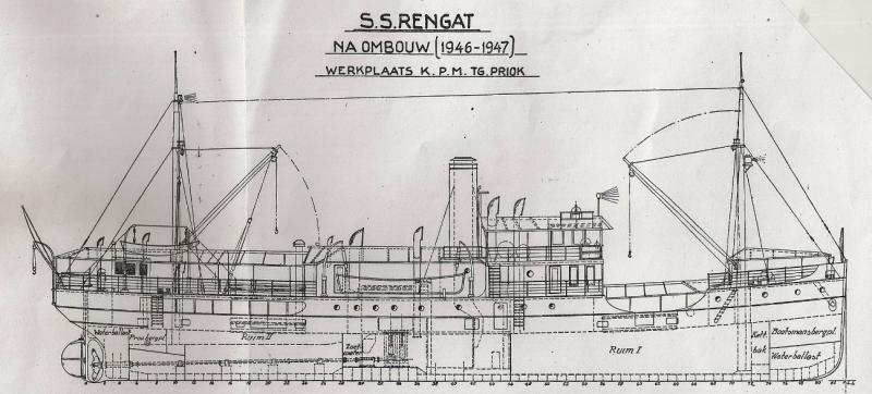 De RENGAT is in 1946/1947 bij de werkplaats van de K.P.M. te Batavia verbouwd; de brugopbouw werd verminderd, zie plannen van voor en na deze verbouwing onder afbeeldingen. Merkwaardig genoeg bleek de inhoud van het schip daarna bij meting groter: 575,66 ton bruto / 287,37 ton netto.