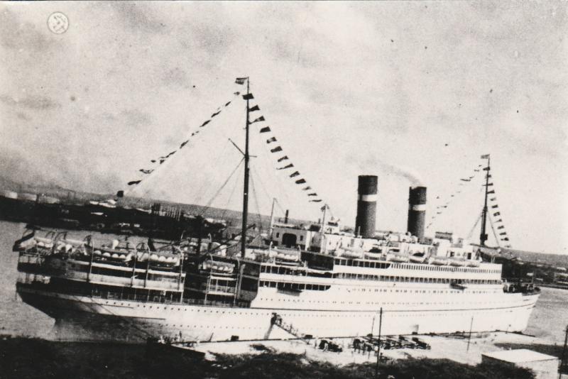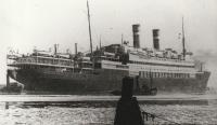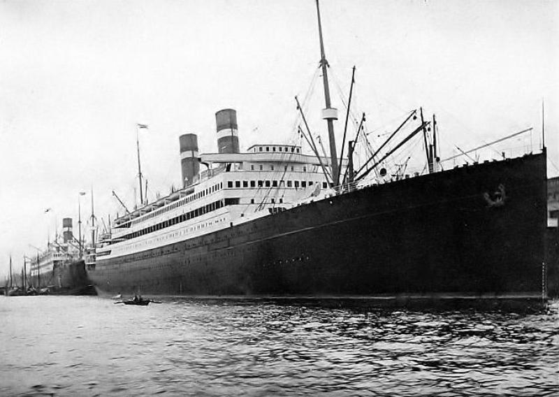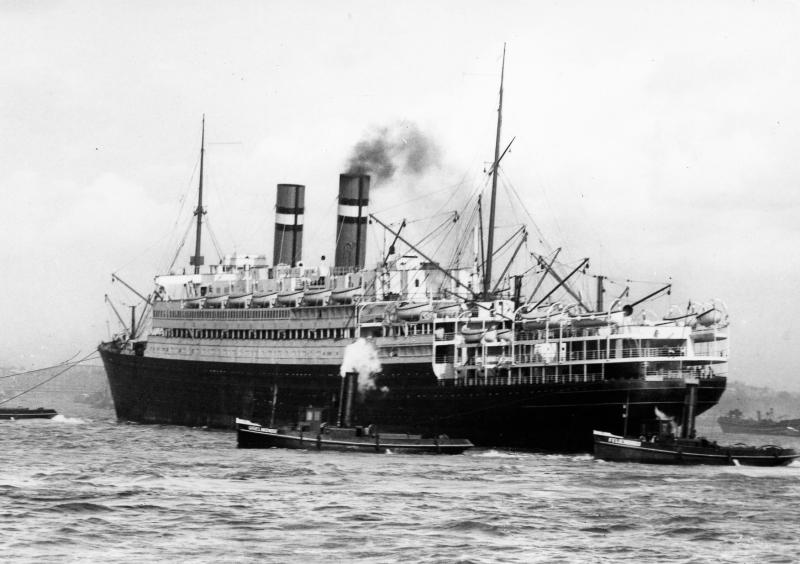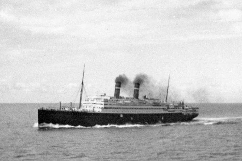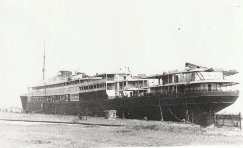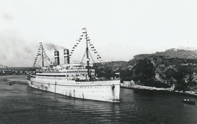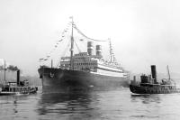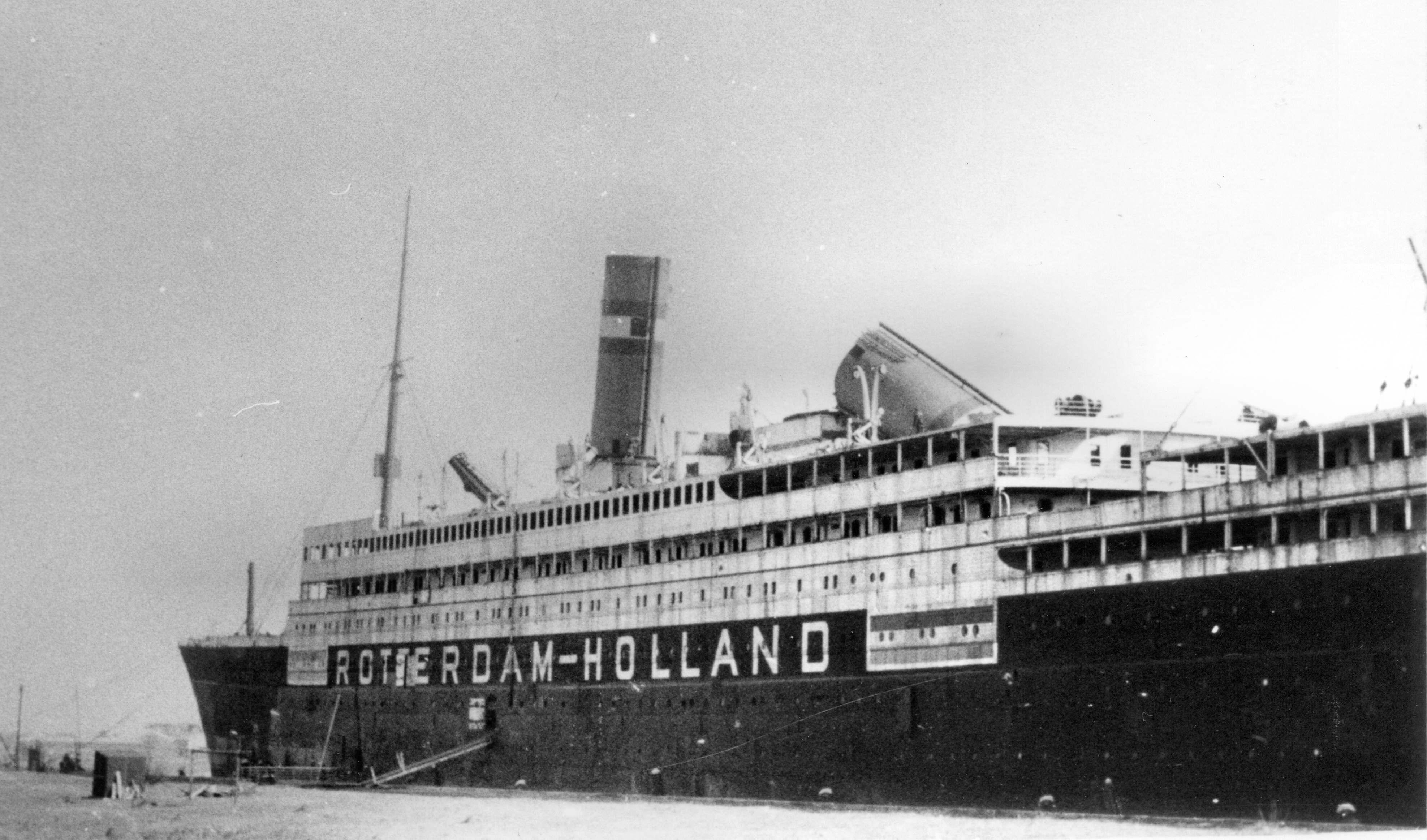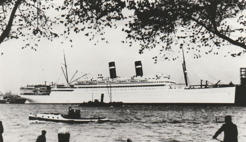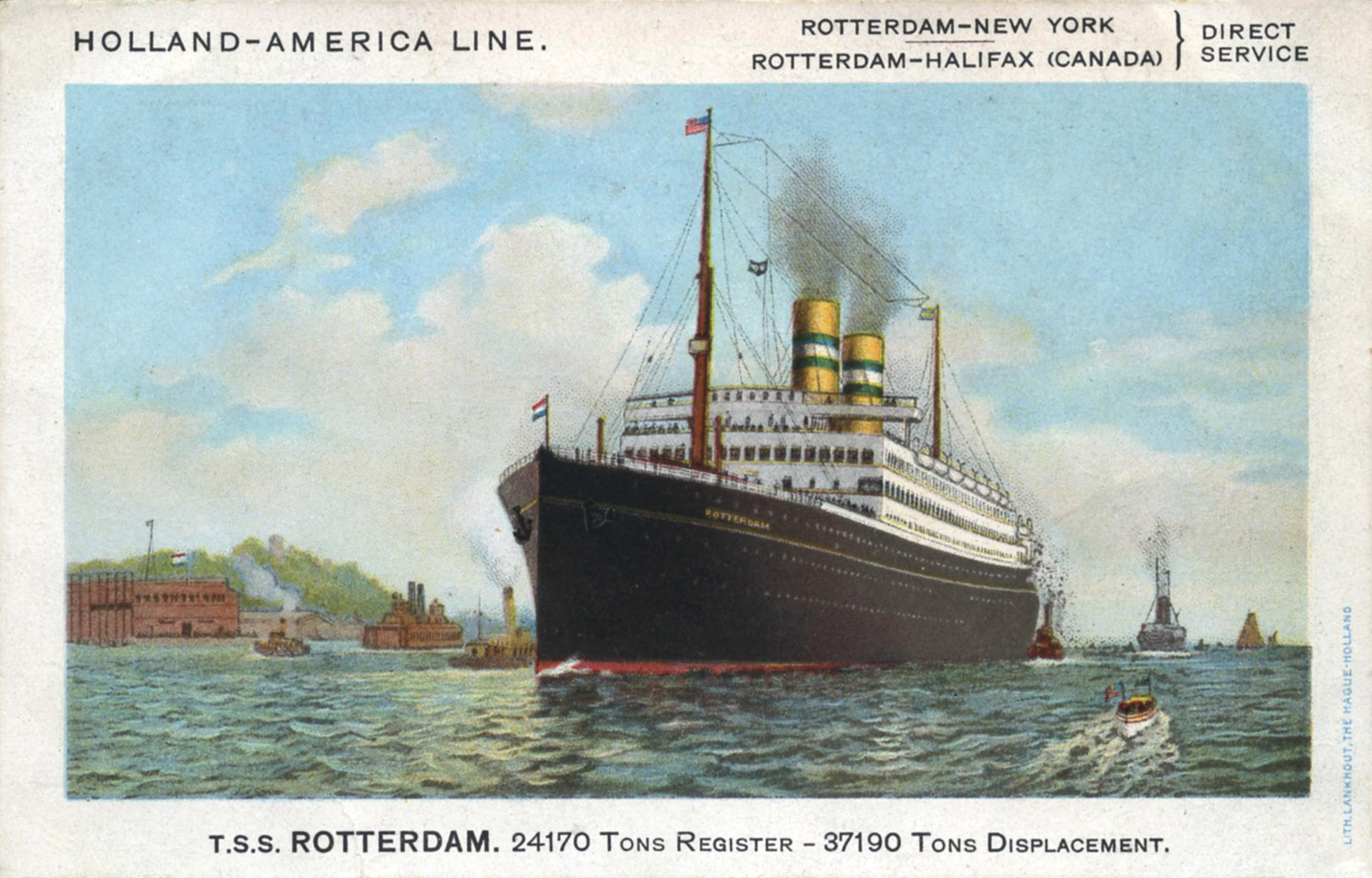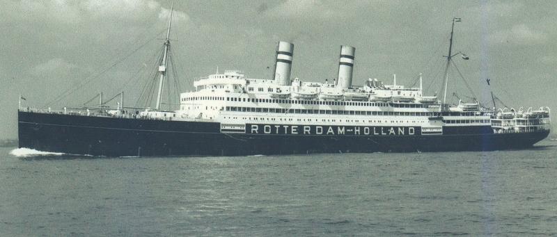 ROTTERDAM detail van schilderij gemaakt door Stephen J. Card waarbij het schip op de rede van Cowes aankomt tijdens een reis van Rotterdam naar New York in 1934. Het origineel bevindt zich aan boord van de ROTTERDAM (6) |