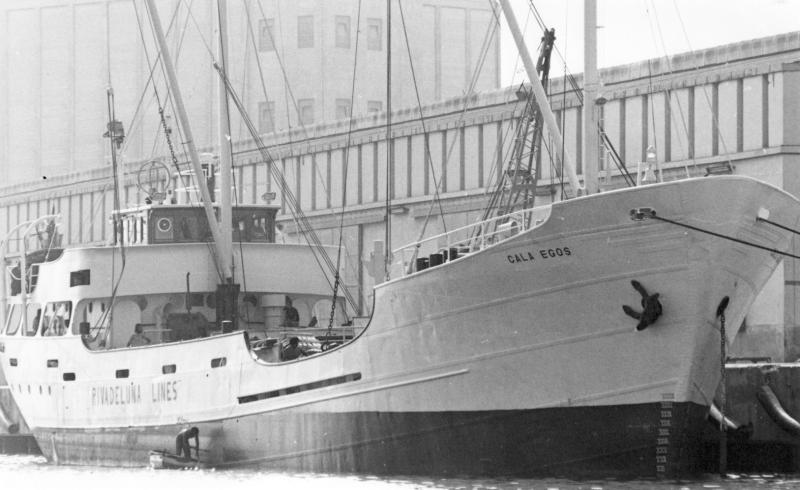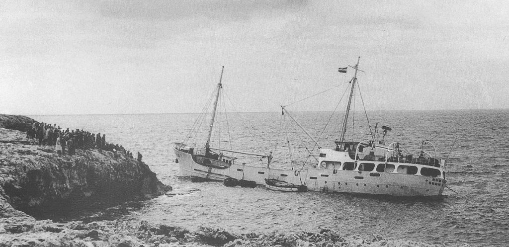 RUBICON op de rotsen gelopen bij Cala Manacor, west van Palma de Mallorca, 8 januari 1959. |
