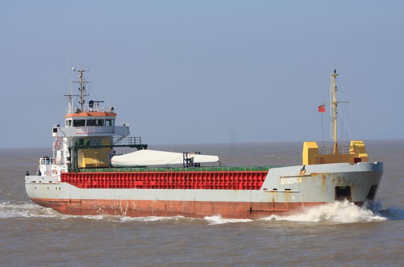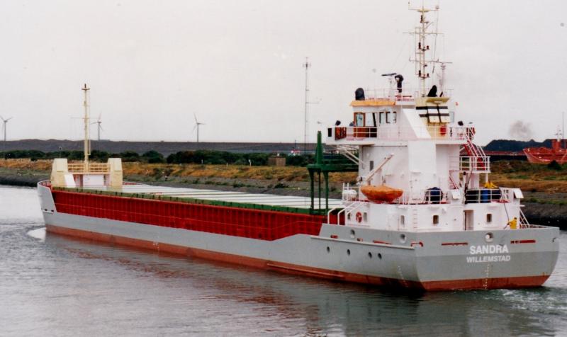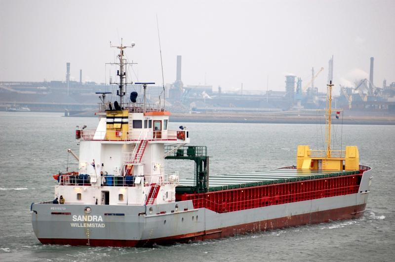 SANDRA op 21-01-2011 op de Eems inkomend de Eemshaven. |