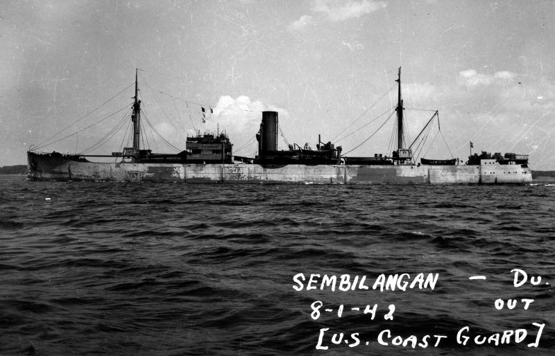 In een van de dokken van Liverpool lag het vrachtschip Sembilangan van de Maatschappij Nederland. Dit was een van de Duitse schepen, de Wasgenwald, die op 10 mei 1940 te Sabang, in het toenmalige Nederlandsch-Indië, door de Nederlanders in beslag was genomen. Het schip werd toegewezen aan de "Nederland". De gezagvoerder was, begin 1943, de heer P.M. Leguit, de midscheeps, stuurlieden, machinisten en de hoofden van de civiele dienst waren Nederlanders, de matrozen en olielieden Lascaren, de bedienden Javanen en een Portugees terwijl er 10 Britse kanonniers aan boord gekomen waren ten behoeve van de bewapening. Totale equipage 87 man. Tot slot was er nog een, door de 4de machinist, de heer Gorter, aan boord geloodste scheepshond die naar de naam Nelis luisterde en zich verdienstelijk maakte met "wacht zitten" bij de kombuis.