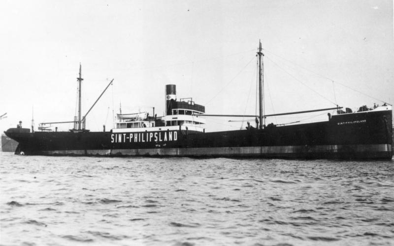 De SINT PHILIPSLAND in mei 1940 in de haven van Terneuzen tot zinken gebracht