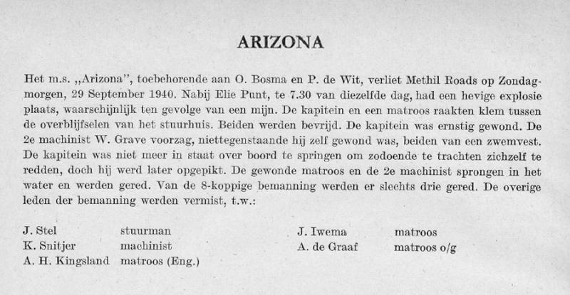 NvhN 27-10-1939: m.s. „Haskerland” opgelegd. Harlingen, 25 Oct. Het motorschip „Haskerland" van de Ned. gevestigd te Rotterdam, is in verband met de tijdsomstandigheden opgelegd. Zooals men zich wellicht zal herinneren werden voor enkele jaren terug een tweetal moderne motorschepen, t.w. de “Zwartewater" en de „Oudewater" in de vaart gebracht, om geregelde weekdiensten op Engeland en Schotland te onderhouden. Daar de export voornamelijk van Harlingen door zuivelproducten in beslag wordt genomen werden deze schepen voorzien van kostbare vriesinstallaties, alsmede ruimen. Nog niet zoo heel lang geleden werden genoemde schepen omgedoopt tot „Haskerland" en „Opsterland". Thans is de „Haskerland" uit de vaart genomen, terwijl het niet tot de onmogelijk- heden behoort, dat ook binnen kort de „Opsterland" eenzelfde lot zal ondergaan. De hooge verzekeringspremies voor deze kostbare schepen zullen ongetwijfeld van invloed zijn op dezen maatregelen. Evenwel wordt de export hierdoor niet geschaad, ofschoon het, meerendeel Harlinger personeel vanzelfsprekend gedupeerd is, daar thans een Groninger kustvaarder is gecharterd, n.l. de „Arizona", terwijl de “Immingham" en „Birmingham" in de vaart blijven. De „Haskerland" heeft nu ligplaats gekregen in de Nieuwe Willemshaven, nabij het vuurschip „Terschellinger Bank”, destijds bij het uitbreken van den oorlog, eveneens te Harlingen arriveerde, om te wachten op betere tijden. Dat deze spoedig mogen aanbreken !