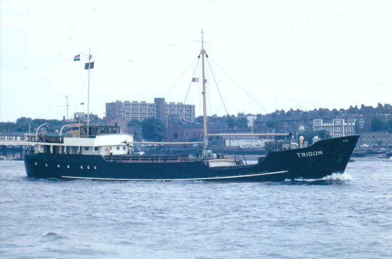 NvhN 30-05-1961: De methyl-alcoholzaak. Trigon-kapitein eveneens vervolgd. Op last van de inspecteur-generaal van de Scheepvaart te Den Haag, zal de kapitein van de Delfzijlster kustvaarder Trigon, de 25-jarige P. D., door de Officier van Justitie worden vervolgd. De kapitein wordt vervolgd, daar „hij met medeweten aan boord van zijn schip zaken heeft toegelaten, tengevolge waarvan lading en schip zijn vertraagd" Zoals men weet speelde de coaster Trigon een rol in de methyl-alcoholzaak in de Zweedse havenplaats Malmö. Twee bemannings-leden verkochten deze dodelijke drank, tengevolge waarvan vier personen zijn gestorven. De twee zeelui zijn inmiddels door een rechtbank in Zweden gevonnist. Ze werden respectievelijk tot 18 en 3 maanden tuchthuisstraf veroordeeld.