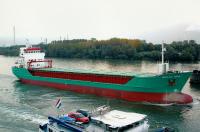 SWAN uitgaand Delfzijl voor de proefvaart op de Eems op 05-01-1995. |