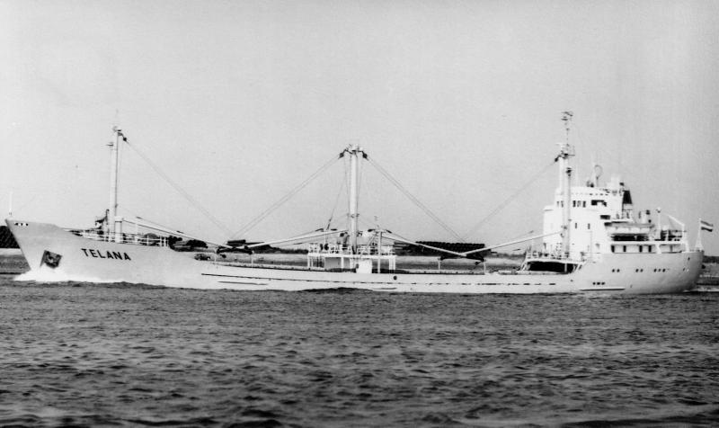 De Waarheid 08-08-1977: Acht opvarenden gered - nog vier vermist Nederlands schip in Kanaal vergaan. Het Nederlands vrachtschip „Telana" uit Rotterdam met twaalf mensen aan boord, is vrijdag-middag gezonken vijftig mijl ten zuiden van de Scilly-eilanden tussen Frankrijk en Engeland. Vier mensen worden vermist, acht anderen zijn opgepikt door Russische schepen, die ze naar de Franse haven Brest brachten. De acht hadden toen tien uur in het water gelegen. Twee van hen liggen gewond in een ziekenhuis.