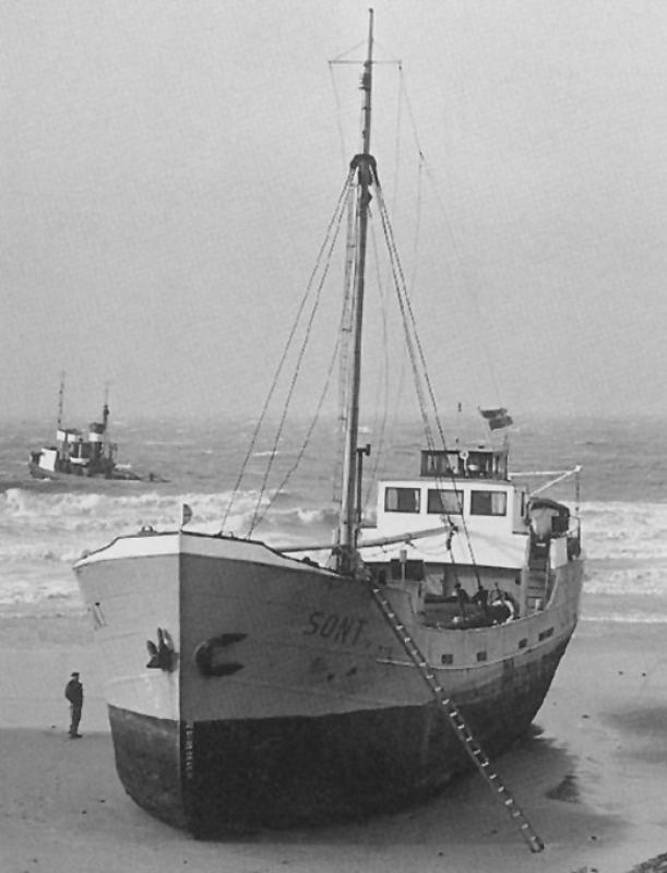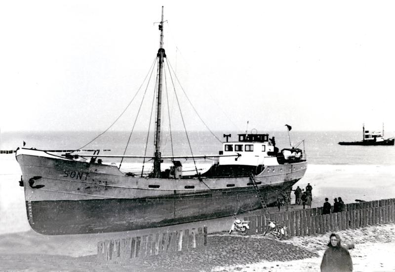 Het Vrije Volk 07-01-1959: Lekke coaster SONT op eigen kracht binnen. (Van een onzer verslaggevers). De reddingboot Jan Lels en de sleepboot Humber gingen vanmorgen het zeegat, bij Hoek van Holland uit, nadat een noodsein werd ontvangen van de Groningse kustvaarder Sont. Het 200 ton metende en vijfentwintig jaar oude schip meldde, dat het een ernstige lekkage had. De eerste berichten spraken zelfs van zinkende toestand. Later bleek, dat het minder ernstig was dan men vreesde. De Sont (vier man aan boord) kwam op eigen kracht voor de Waterwegmonding, waar het bergingsvaartuig Dolfijn wachtte met pompgereedschap. Om twee uur kwam de Groninger, die intussen nog een loods aan boord genomen had, veilig binnen. De Humber en de Lels hadden het schip gemist, doordat het een te zuidelijke positie had opgegeven. De reddingboot kwam gelijk met de Sont de Waterweg op. De sleepboot Schelde, die reeds eerder in de morgen was uitgevaren, om hulp te bieden aan. een Engels schip, dat 100 mijl uit de kust in nood verkeerde, keerde eveneens onverrichter zake terug, maar kon in de Waterwegmonding de Sont assisteren. Het Engelse schip had hulp gekregen van een Engelse sleepboot.