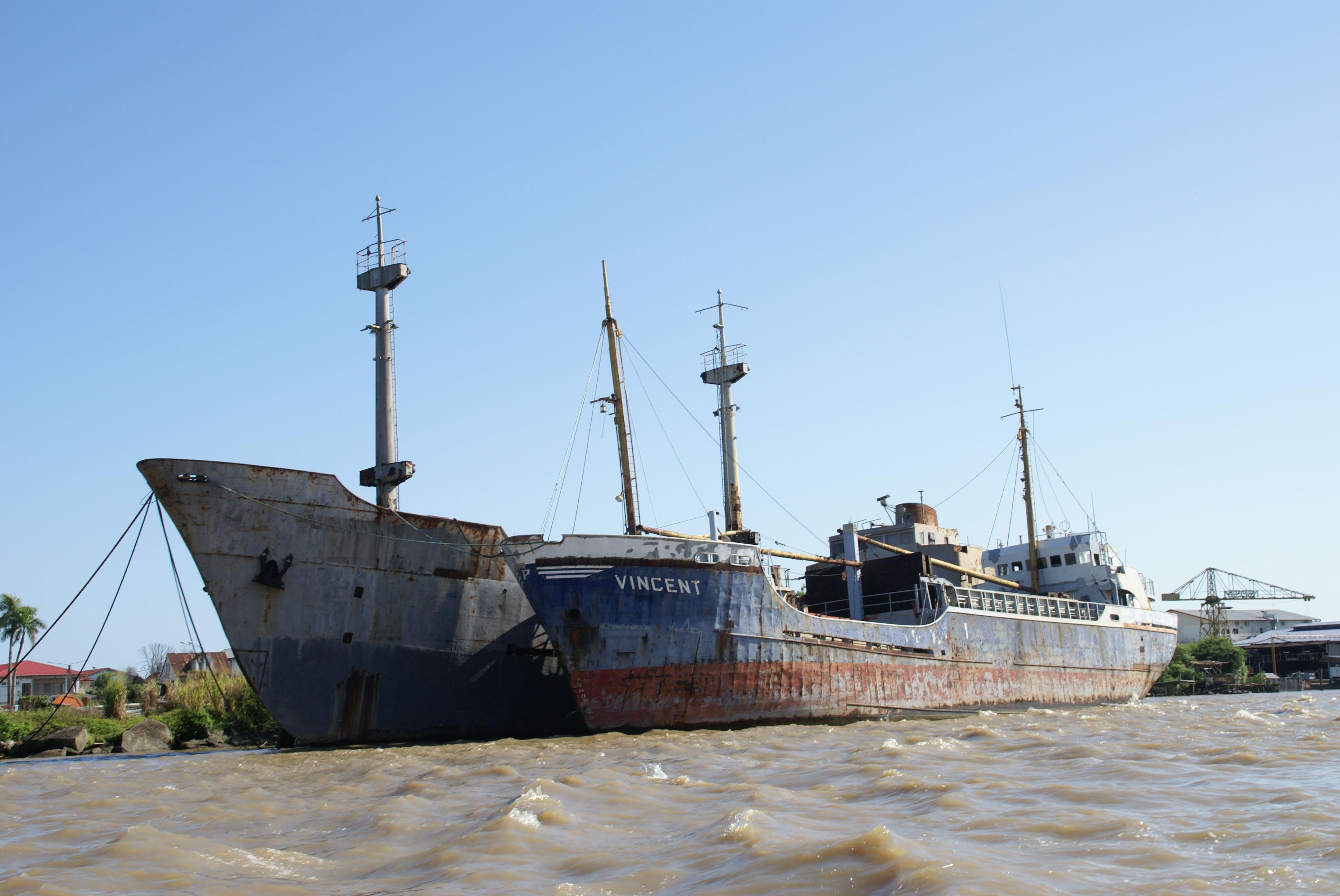 VINCENT liggende op 20 februari 2009 op de Suriname Rivier, Suriname naast het m.s. Suriname (bj 1960) |