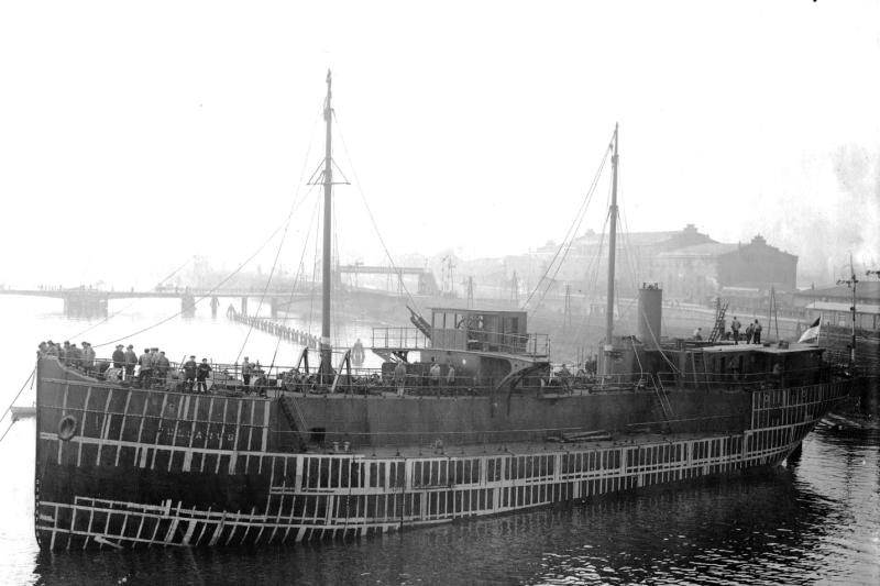 Gehoord werd de heer C. Kloos, ingenieur, technisch leider van de machineafdeling van de Nederl. Fabriek van Werktuigen en Spoorwegmaterieel te Amsterdam. Het schip is in 1910 gebouwd, de machines heeft getuige ontworpen. Er waren twee motoren, over welker werking getuige inlichtingen gaf. Ze zijn door Lloyds onderzocht. Het inblaasvat dient om de olie te verstuiven. De ervaring, met deze vaten opgedaan, is goed. Zij moeten 100 atmosfeer druk kunnen verdragen, maar niet meer dan 60 à 65 werd ervan gevergd. Aangaande hetgeen aan het ongeval was voorafgegaan, deelt getuige mee, dat de kruk en bout waren gebroken; het stuk kwam op de plaat neer. De as van de motor was verwrongen; de kleppenstand wat slecht geworden. In de afgelopen zomer is de VULCANUS aan de fabriek ter reparatie geweest; de motor was er toen uit. Aan de details was niets gedaan. Na de reparatie ging men aan boord proef draaien. De avond voor het ongeval liet men de motor op lucht draaien. Toen na het ongeval een onderzoek naar de mogelijke oorzaak werd ingesteld, bleek getuige, dat het buisje aan de motor, dat ook dient om lucht In te persen, gescheurd was. Getuige gelooft, dat er te hoge druk was opgeperst, en het vat in de laatste tijd wat verzwakt was. Gehoord werden ook de kapitein en de machinisten A.A. Rooderkerk, van Rotterdam en S. Glastra van ’s-Gravenhage. De Raad zal later uitspraak doen. |